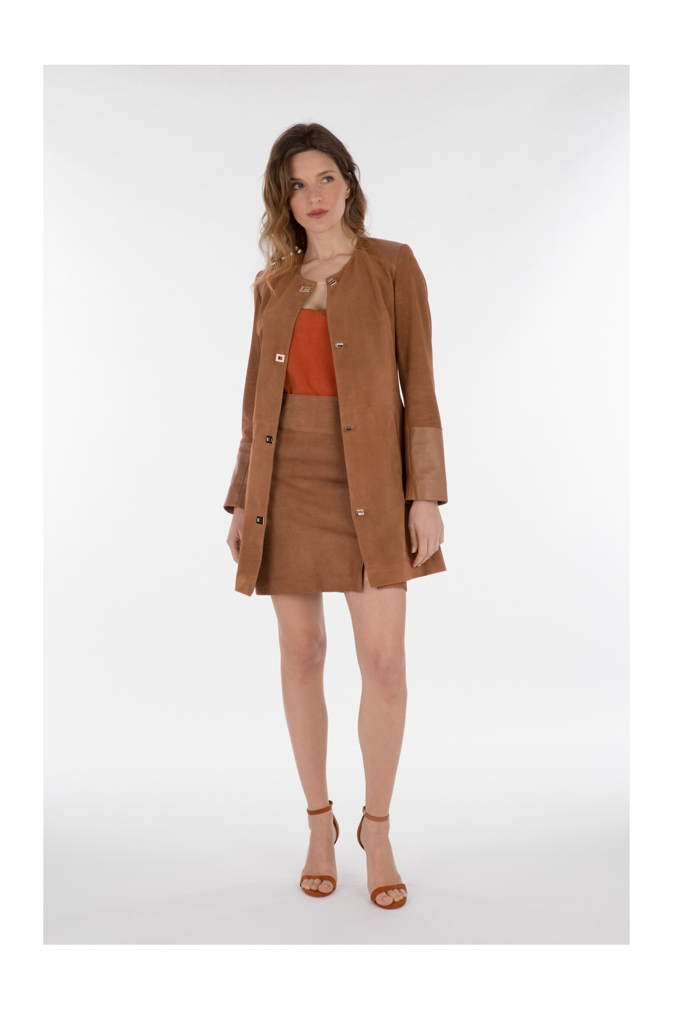 • Lamb leather at the bottom of the sleeves, on shoulders and pockets