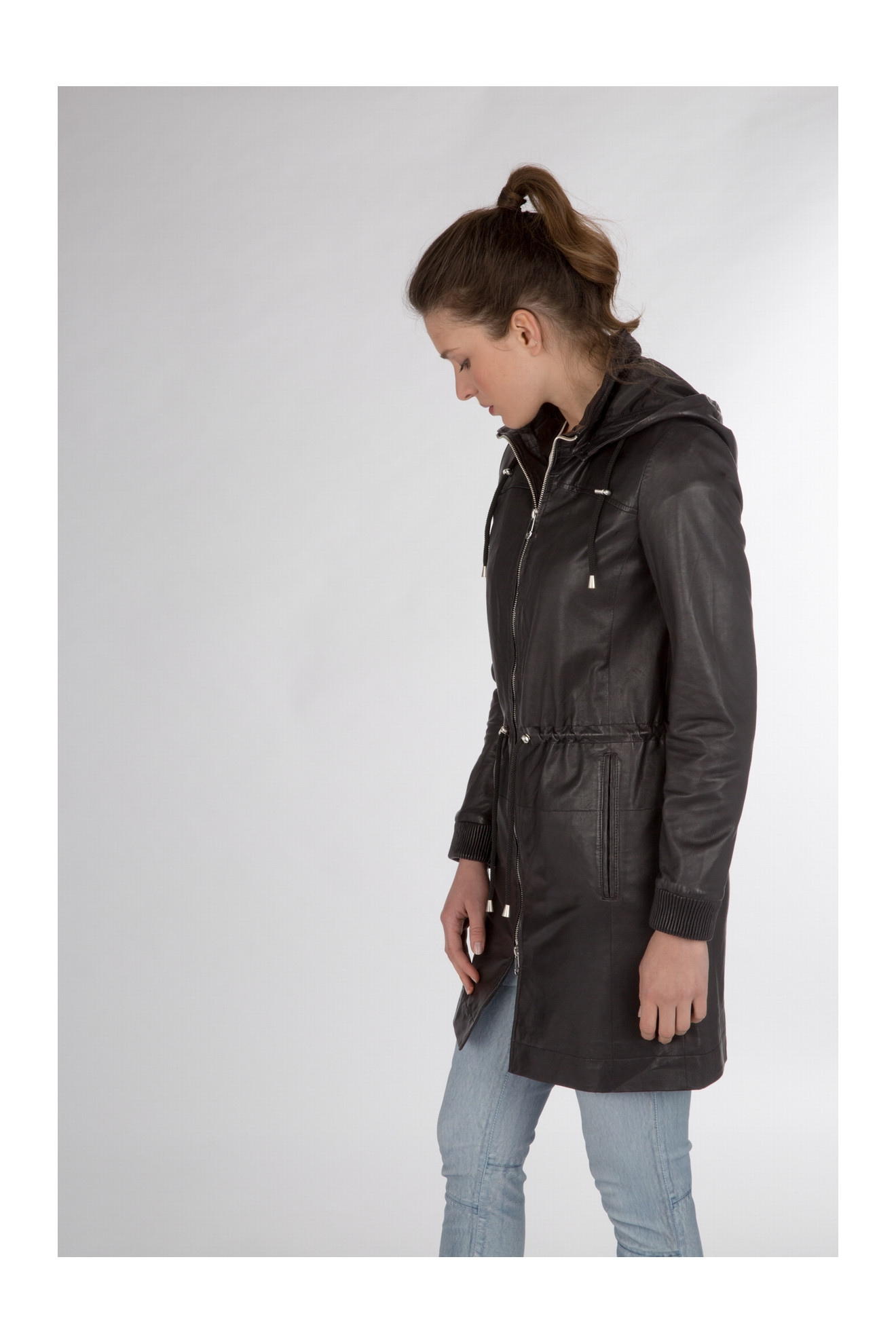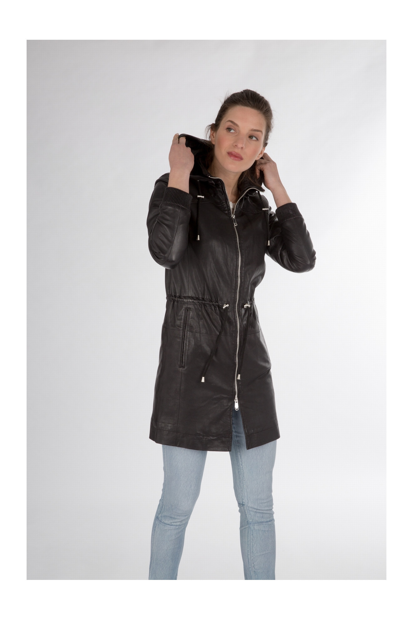Le modèle MALAIKA est un manteau 3/4 en cuir.