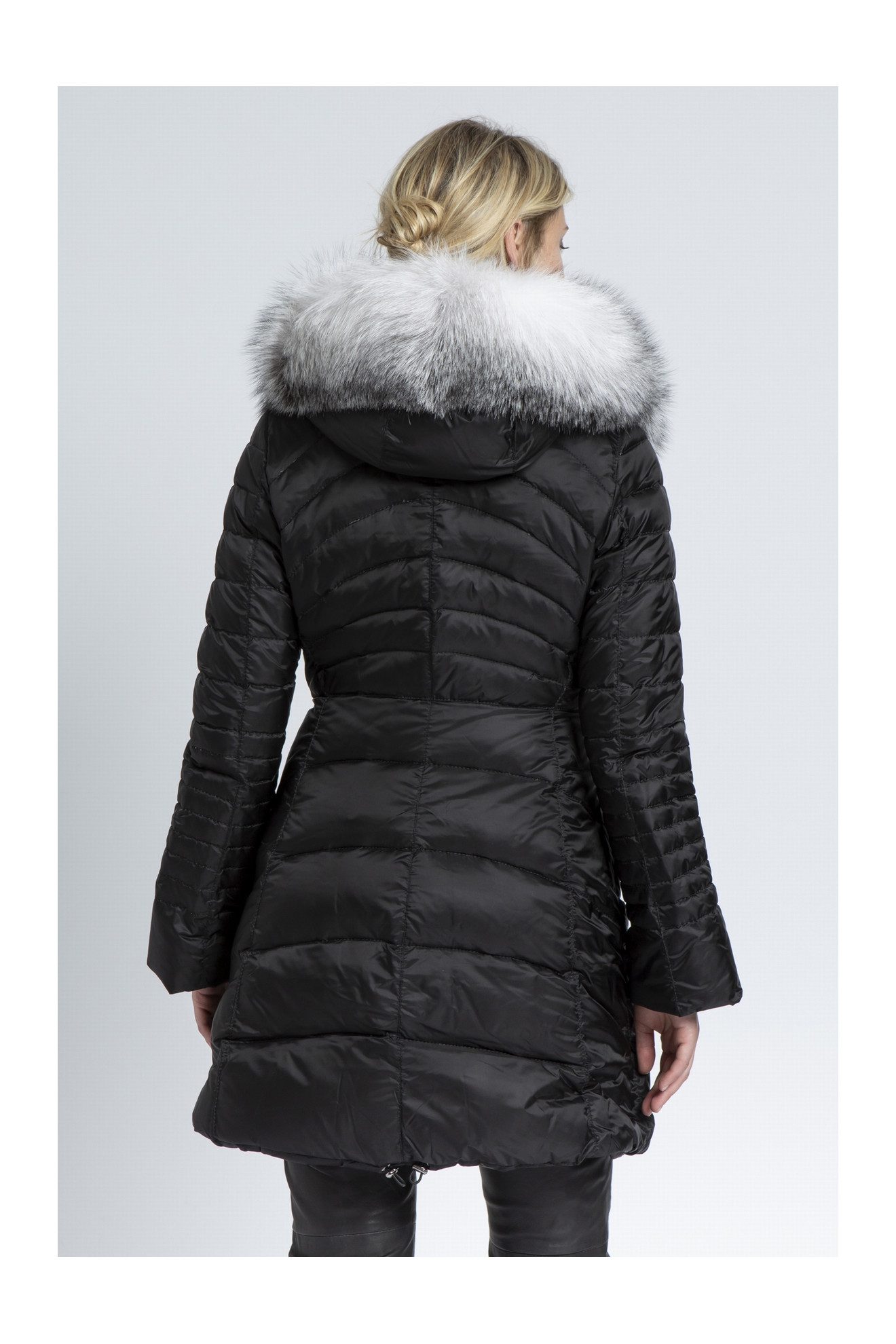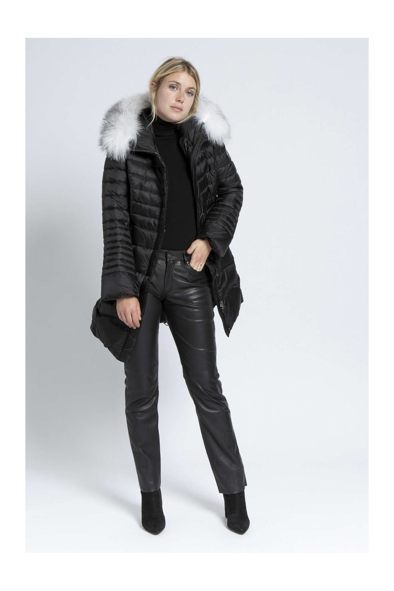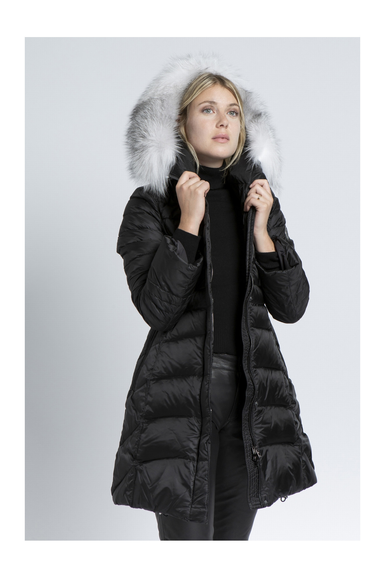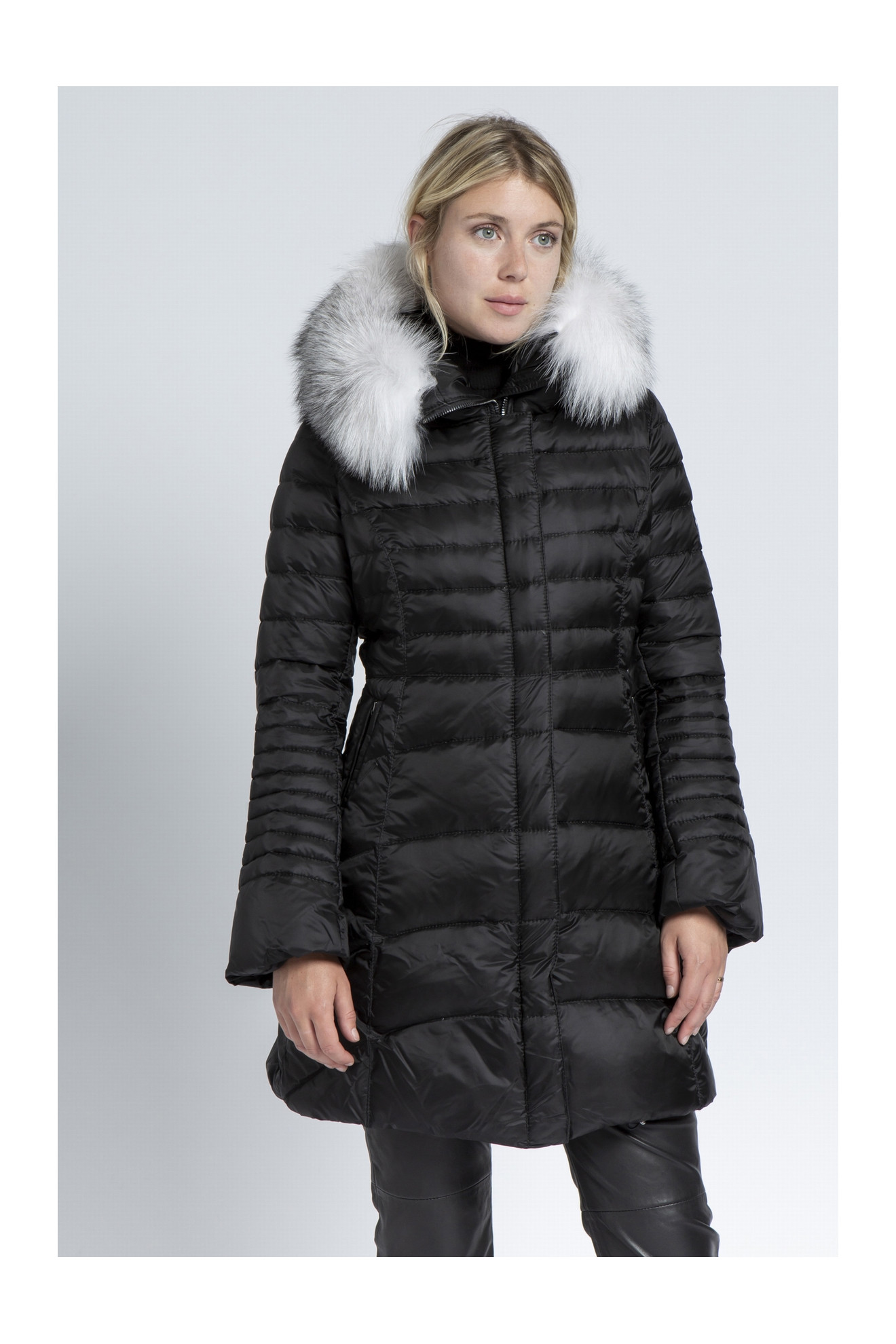 Le modèle DOMICIME est une doudoune en duvet d'oie avec une capuche bordée de renard.