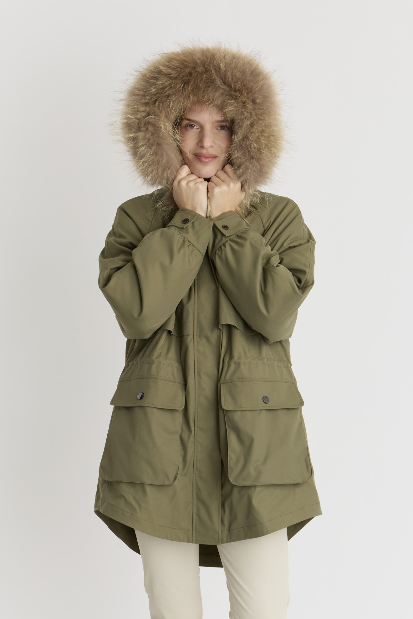 Avec sa double fermeture centrale, ses poches pratiques et sa doublure amovible en raccoon, la parka PHACELIA allie confort, fonctionnalité et élégance.