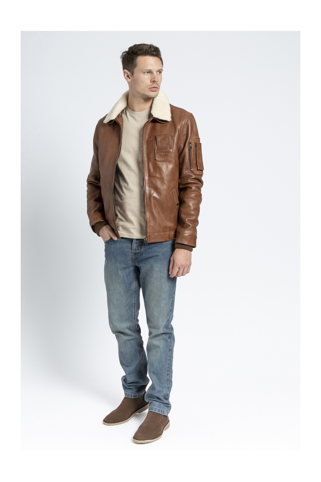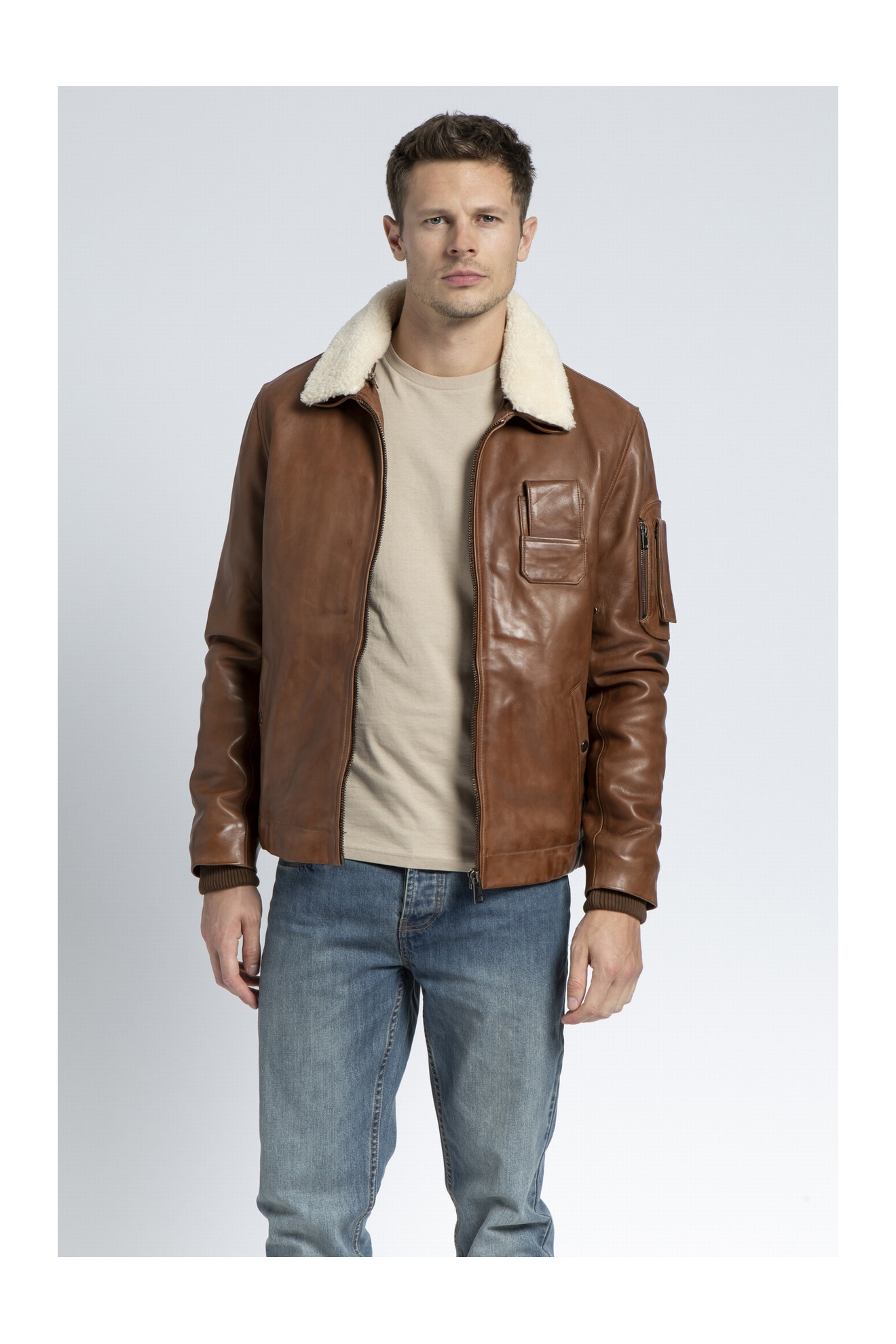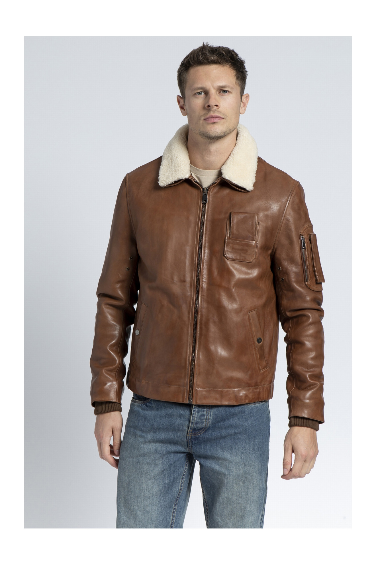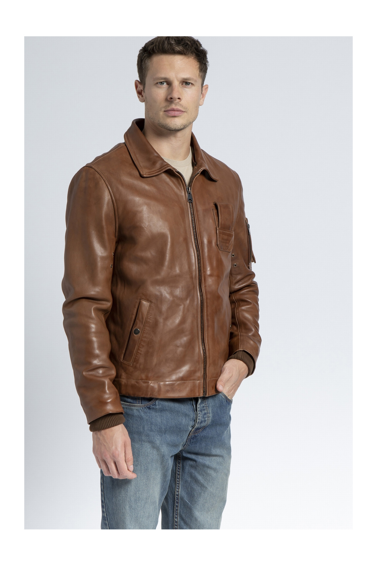 Le modèle HOWARD est un blouson aviateur en cuir d'agneau.