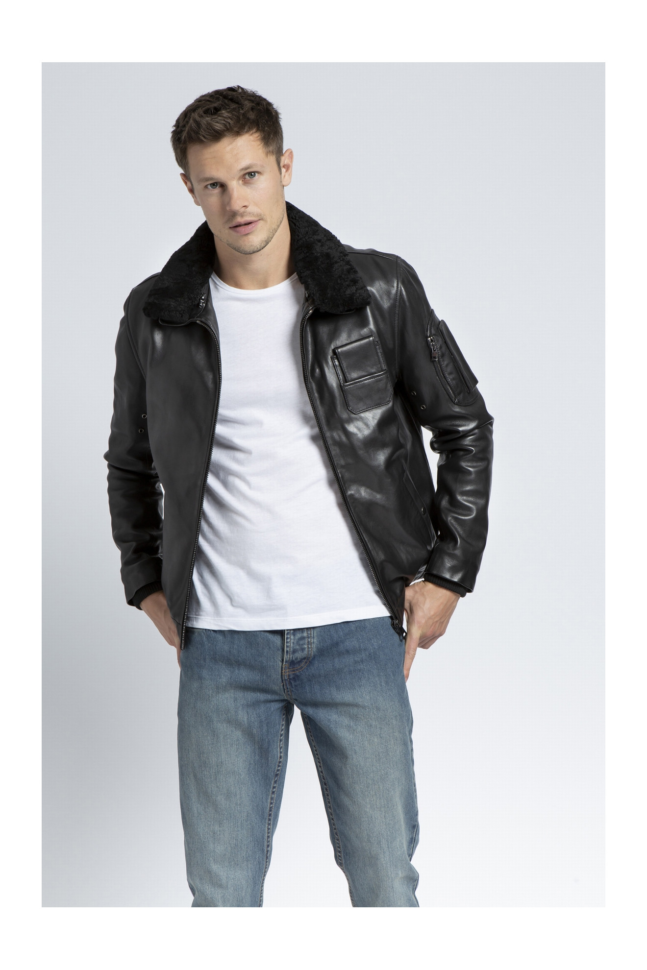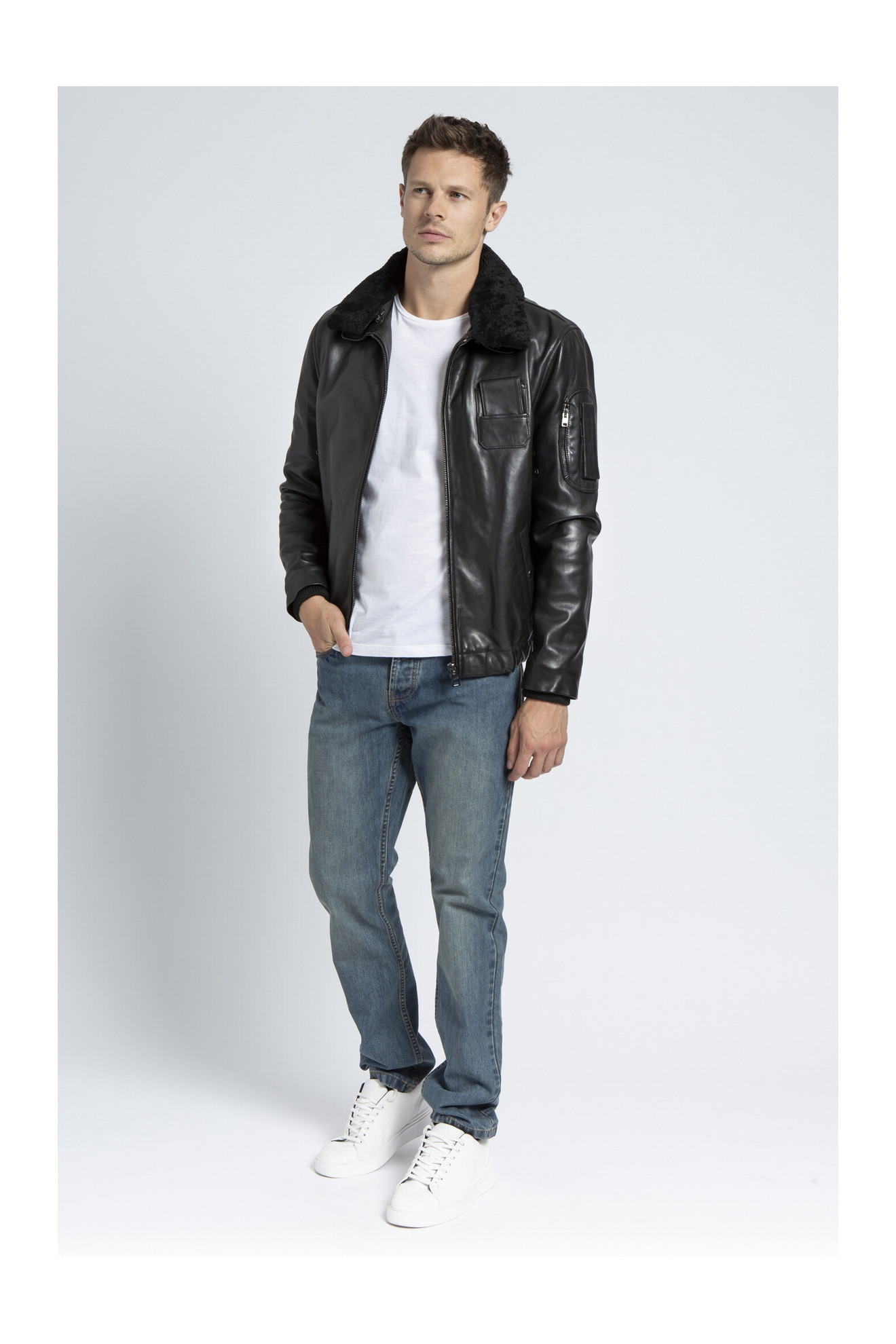 Le modèle HOWARD est un blouson aviateur en cuir d'agneau.