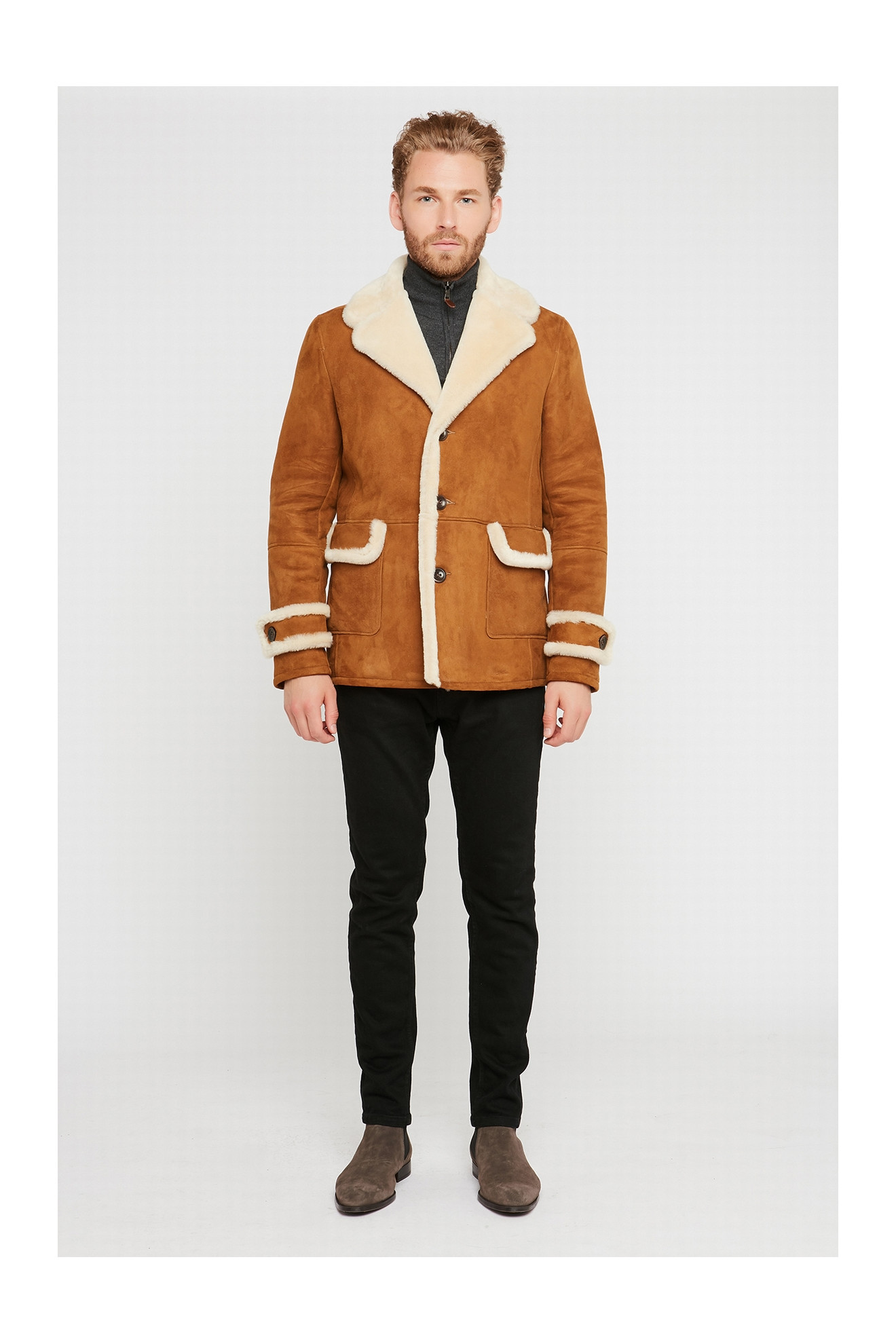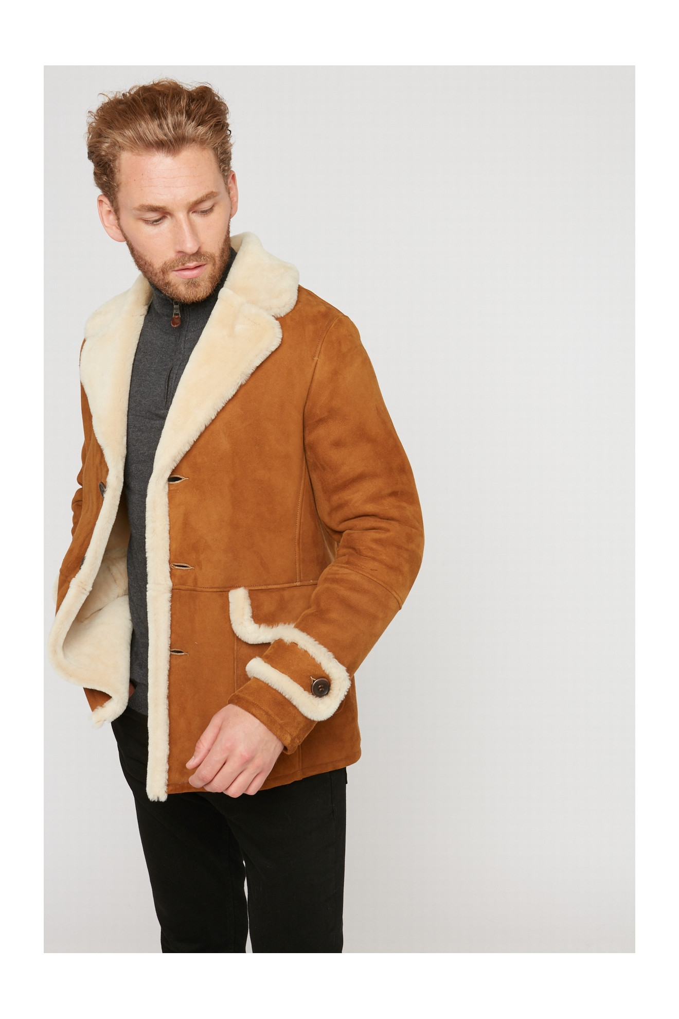 Le modèle CHARLES est une veste en peau lainée d'agneau velours.