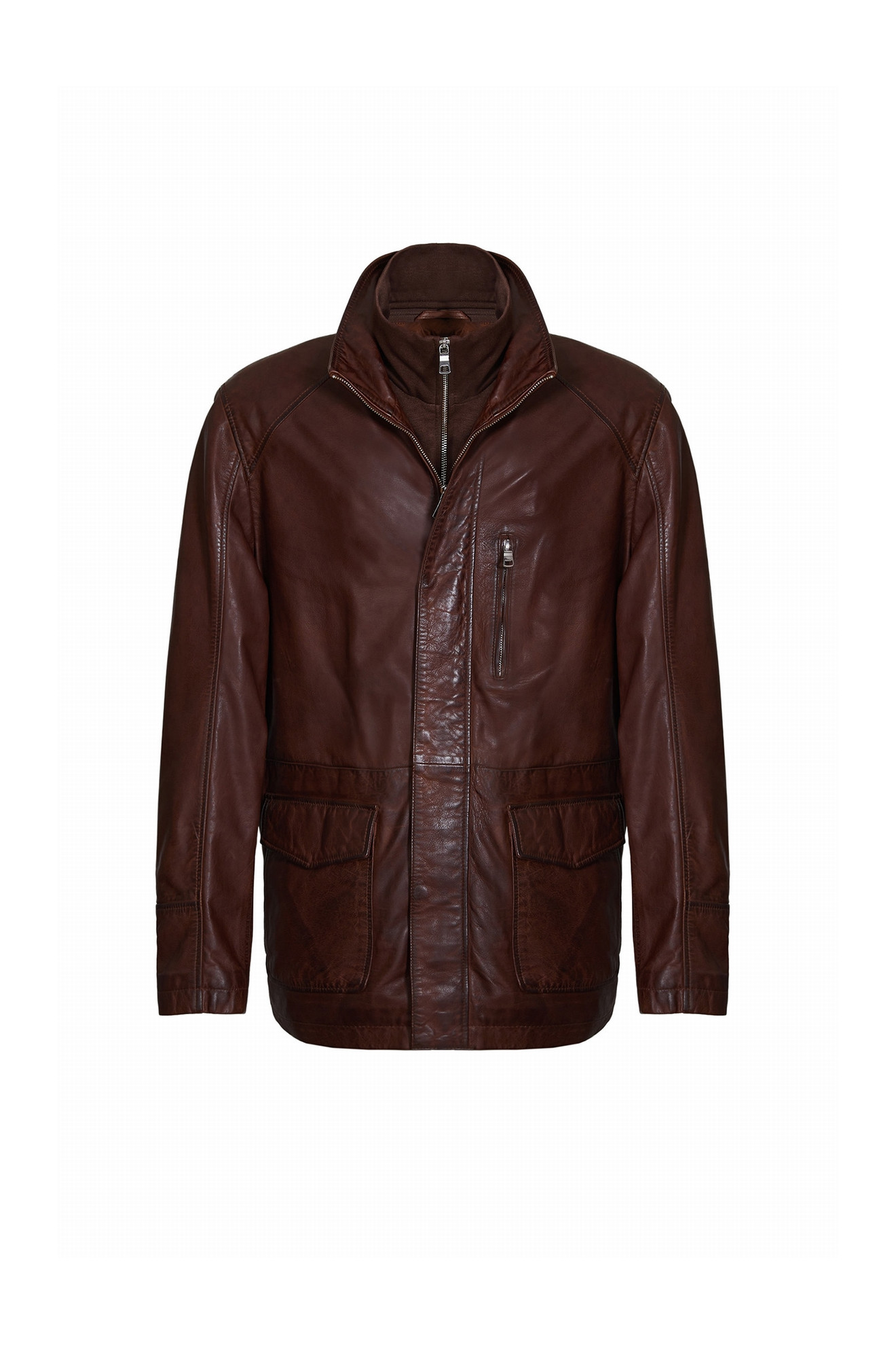 Le modèle MIGUEL est une veste longue en cuir.