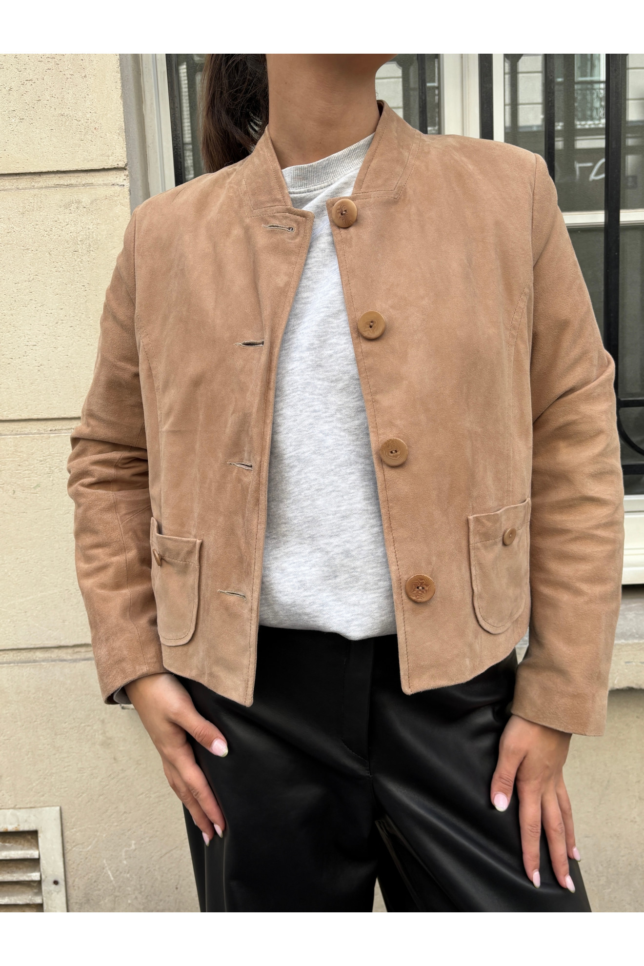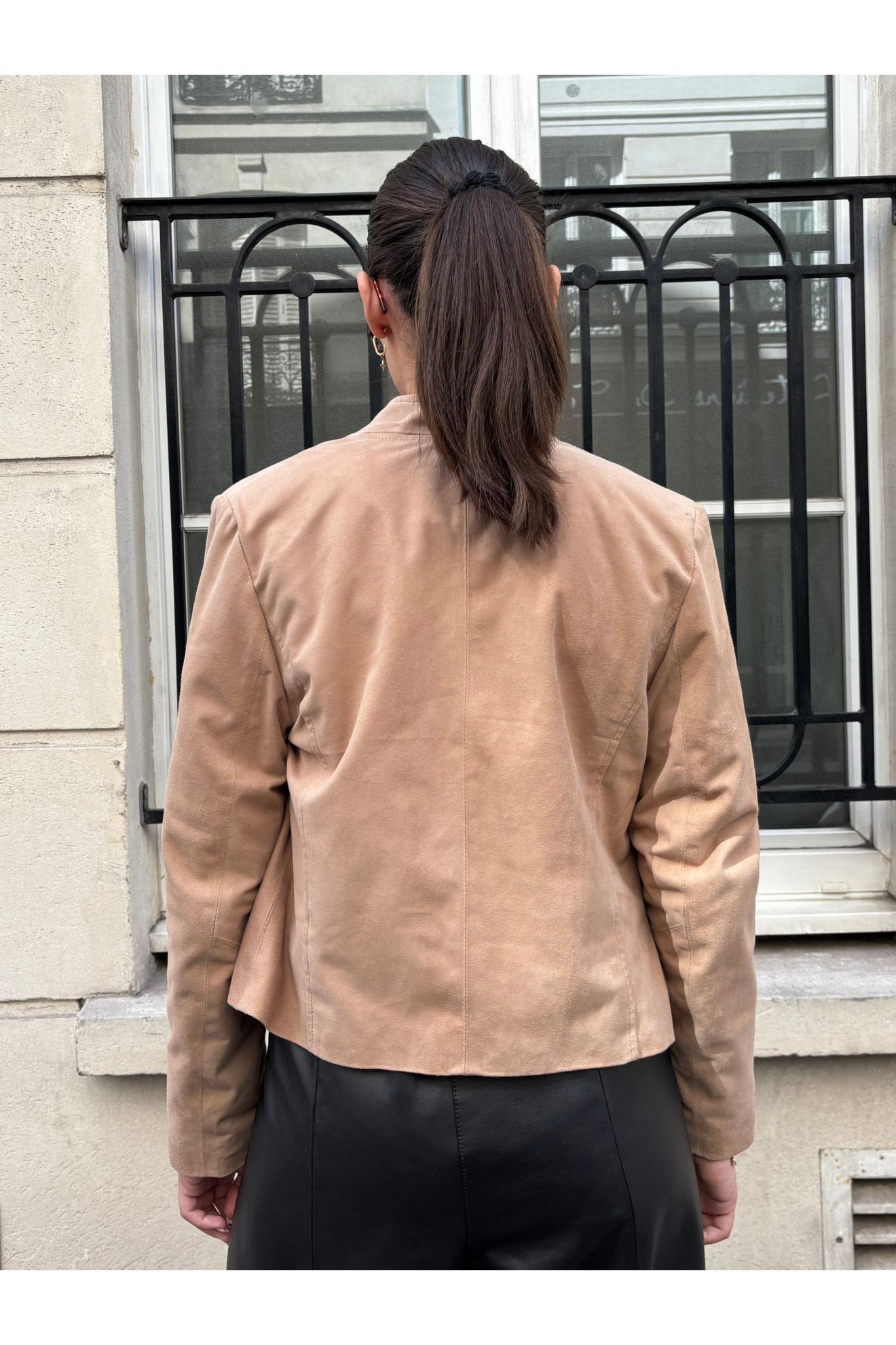 Le modèle ALBARINE VEL est une veste en daim à manches longues.