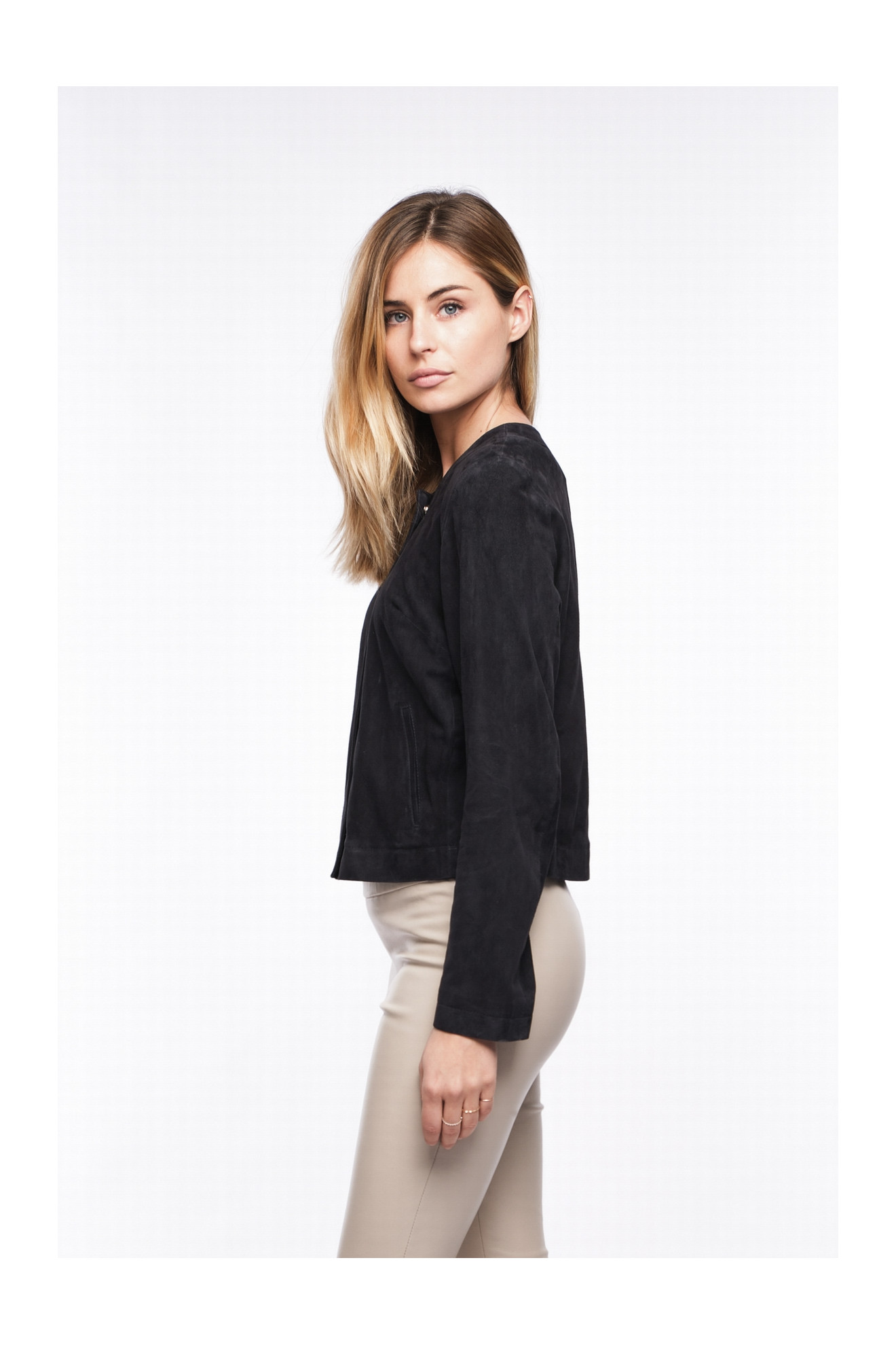 YVOIRE VEL is a goat leather short jacket.
