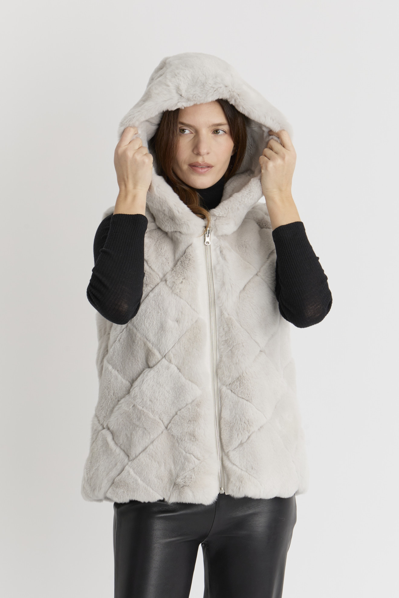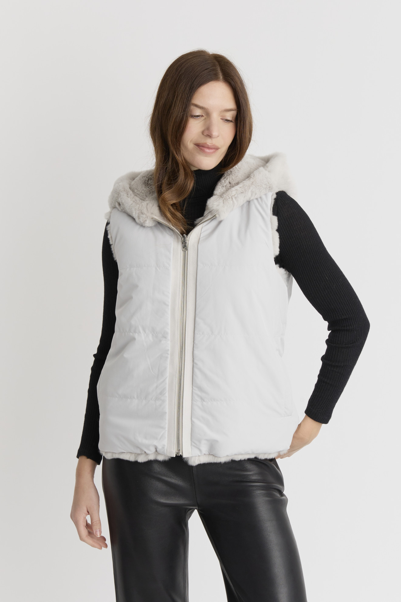 Découvrez le modèle POLARIS, un gilet réversible en fourrure de lapin alliant luxe, confort et modernité.