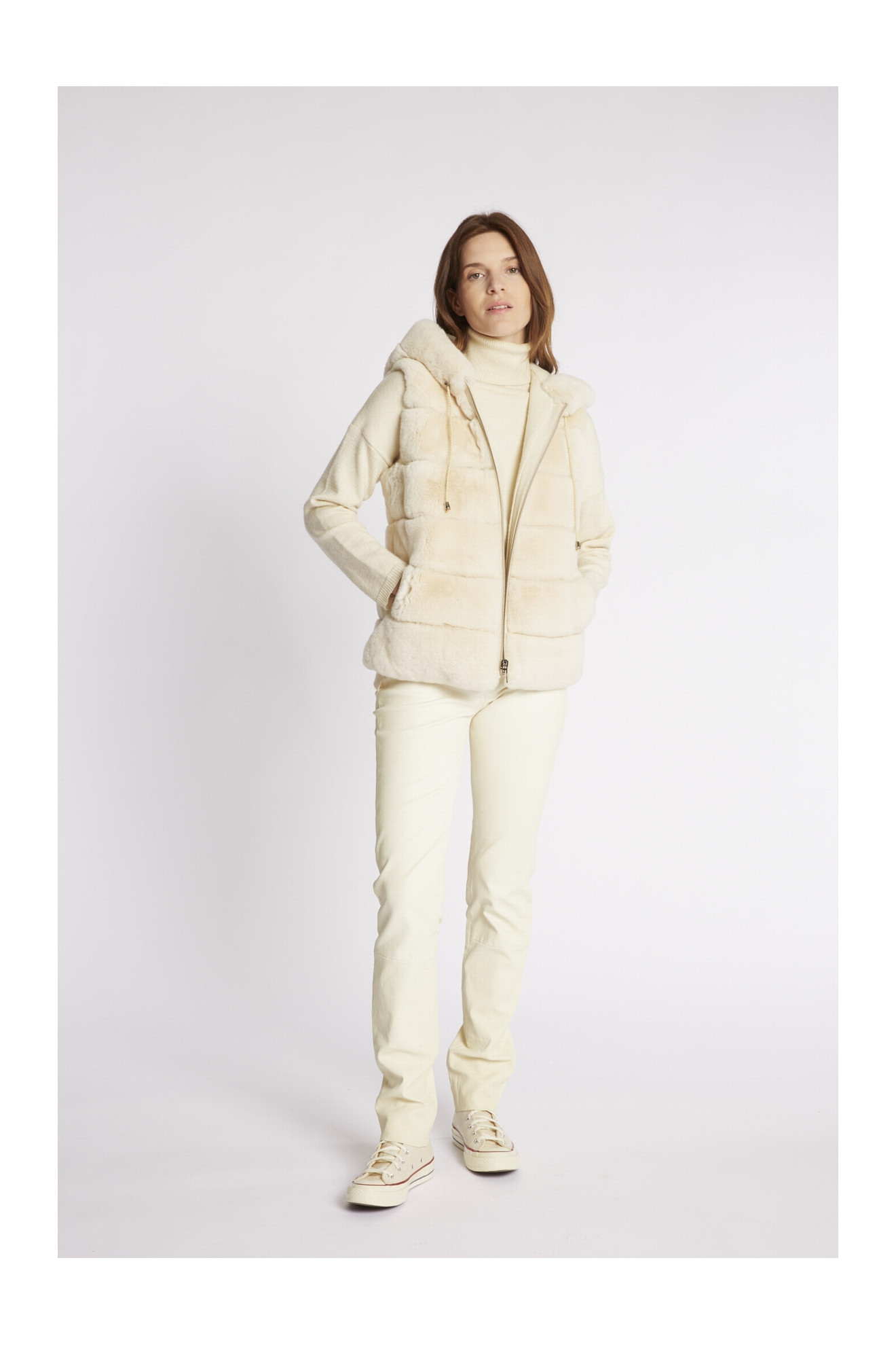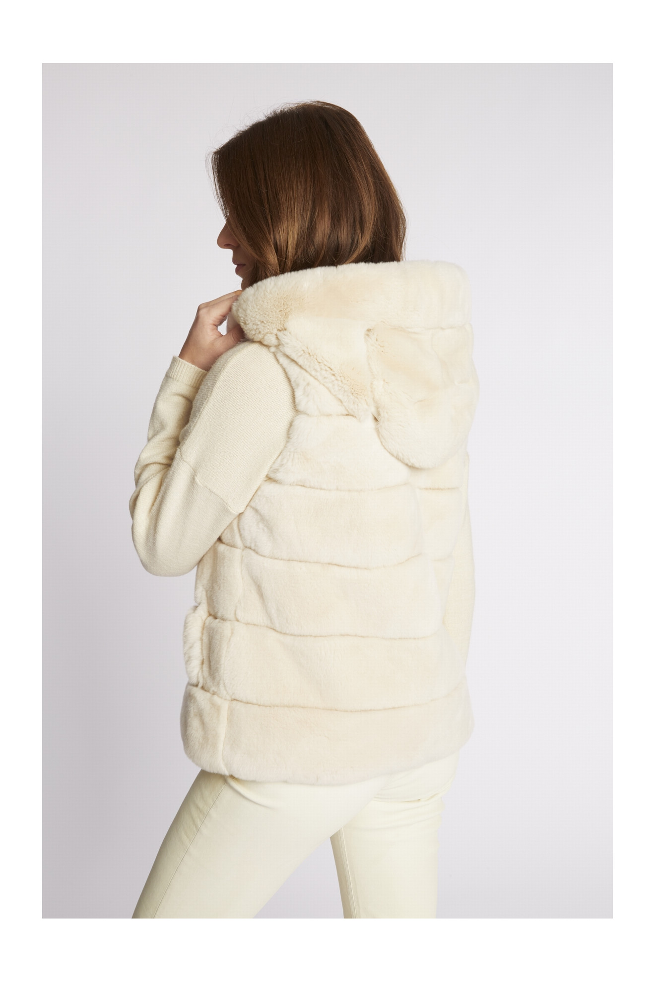 Découvrez le modèle DELIZIA REX, un gilet réversible en fourrure de lapin alliant luxe, confort et modernité.