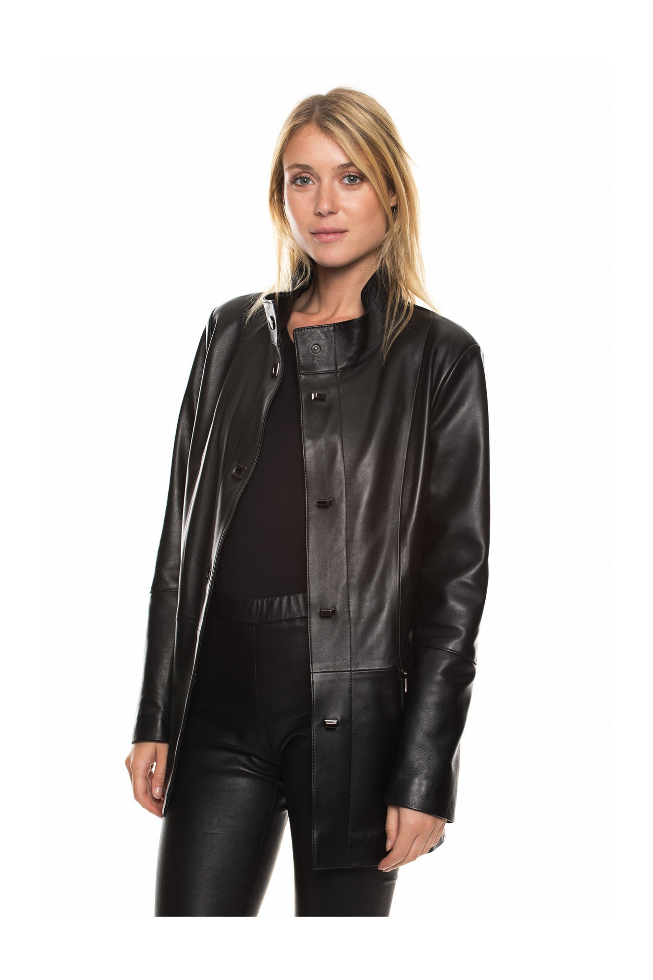 Le modèle NANOU WAXY est une veste 3/4 en cuir d'agneau