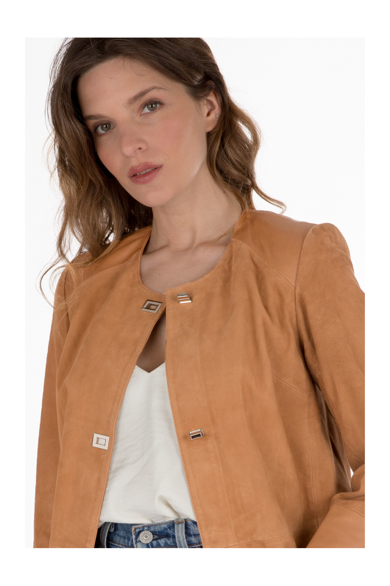Le modèle IOLANDA VELOURS est une veste 3/4 bi-matière.