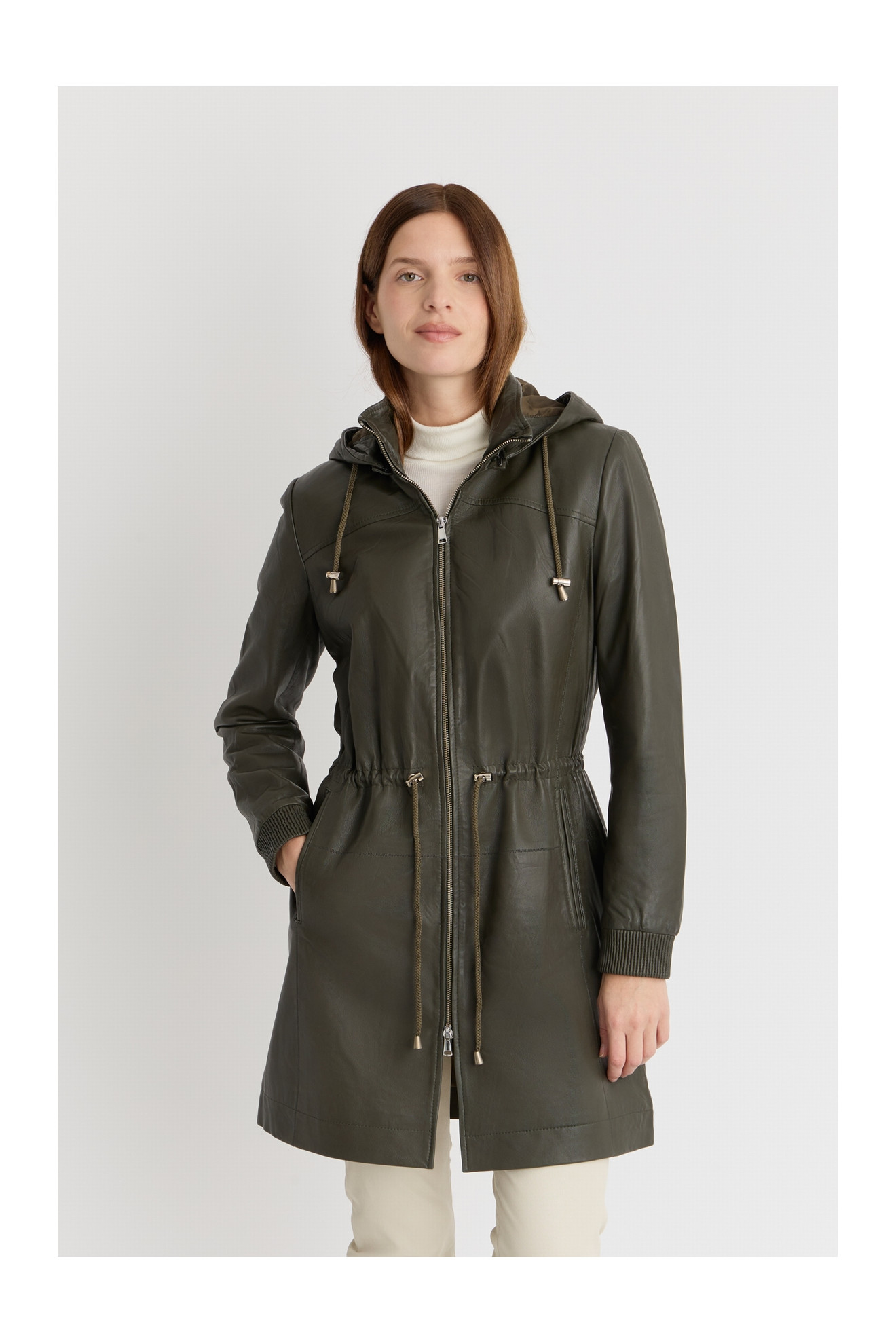 Le modèle MALAIKA est un manteau 3/4 en cuir.