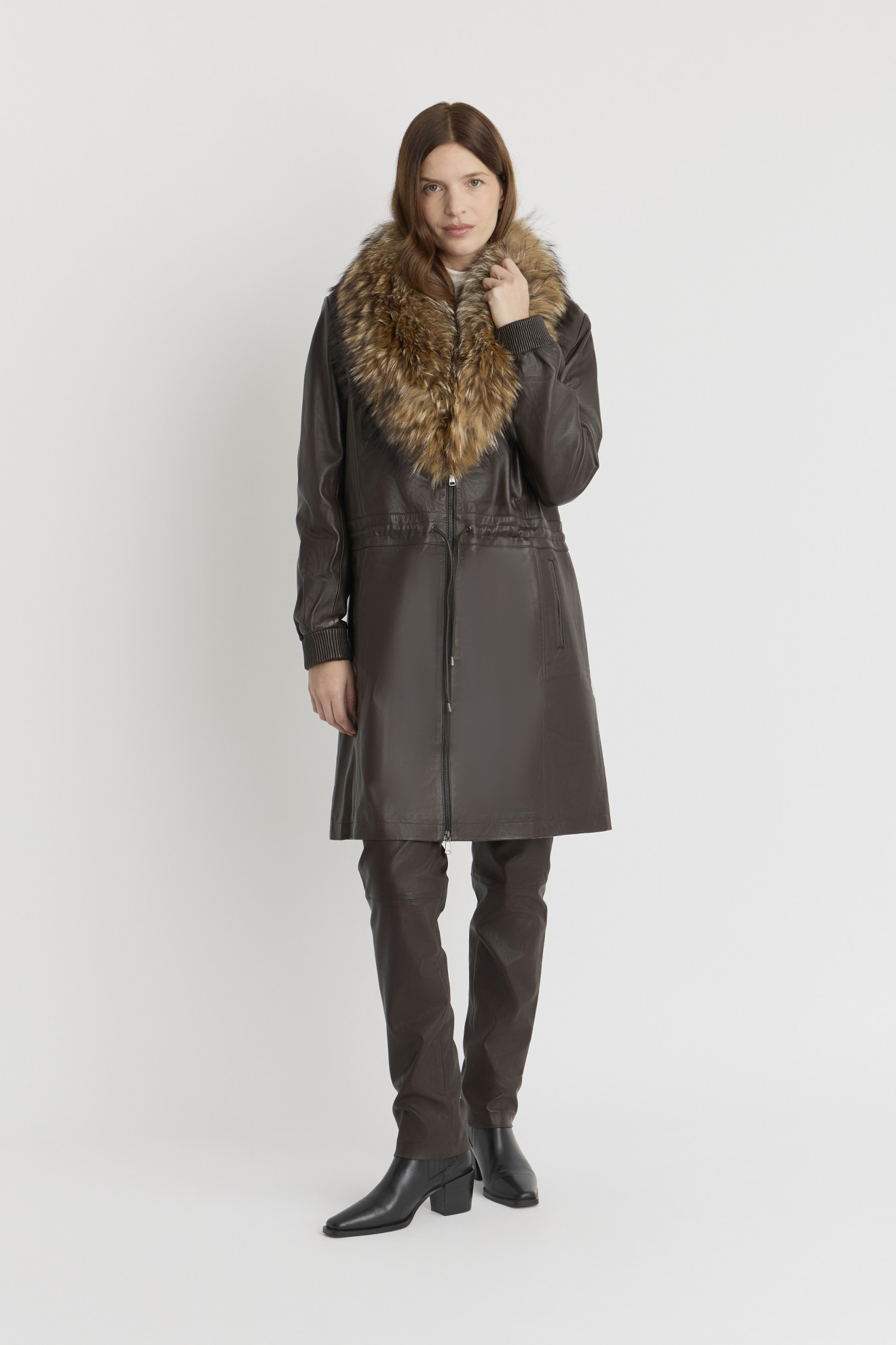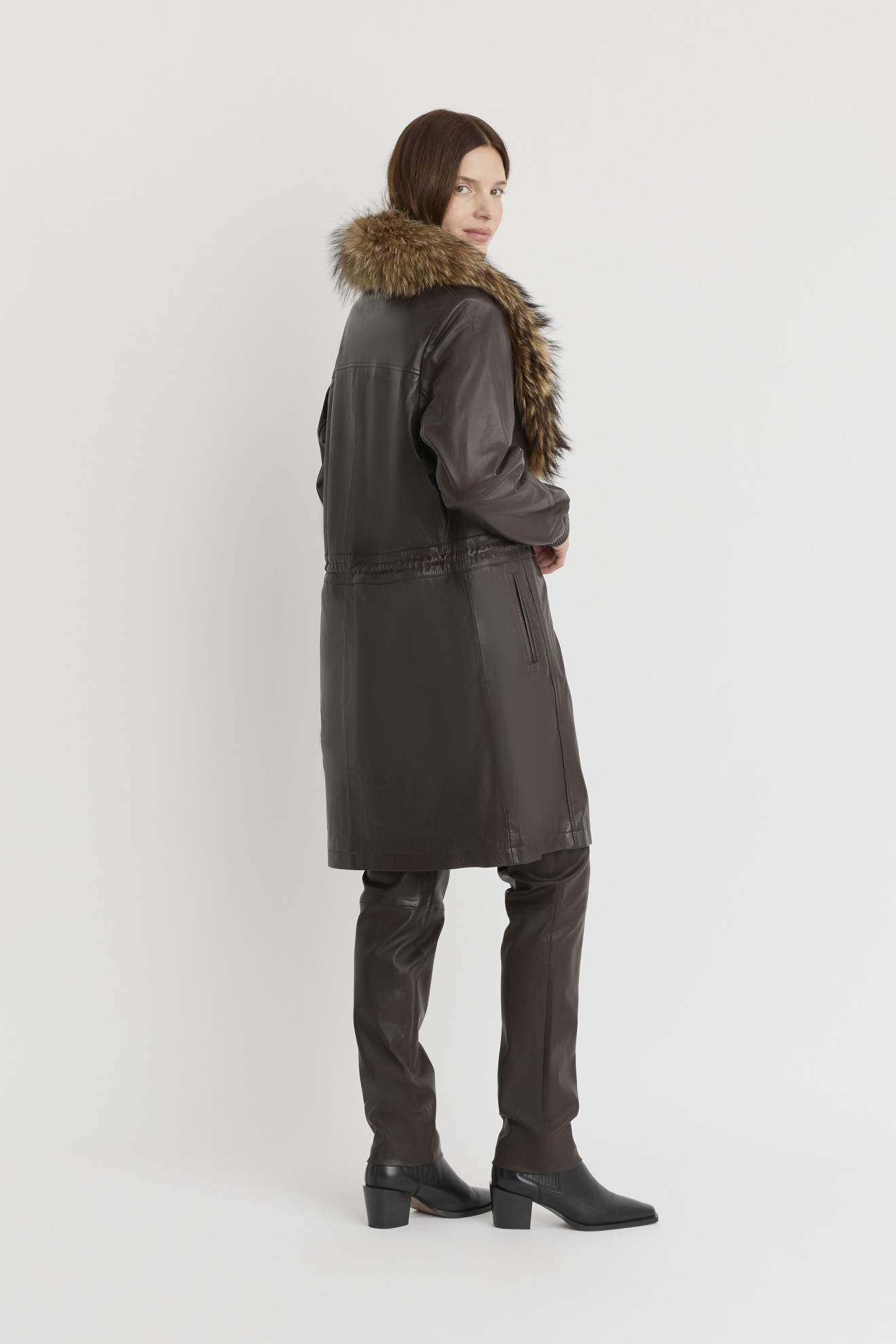 MANTEAU EN CUIR COL FOURRURE MONTBRETIA