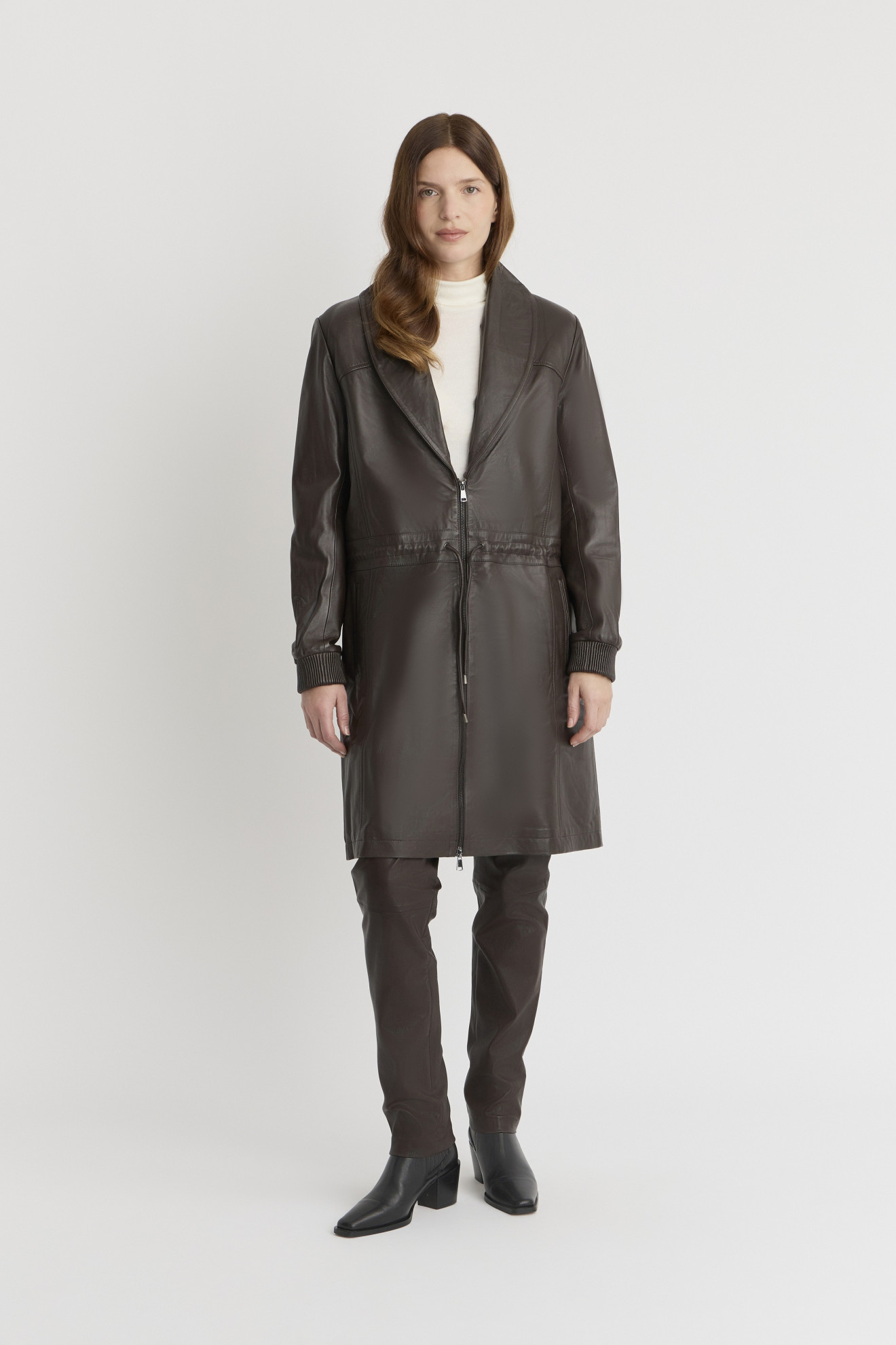 MONTBRETIA : Le manteau en Cuir avec Col en Fourrure Amovible pour un Look Luxueux et leger.