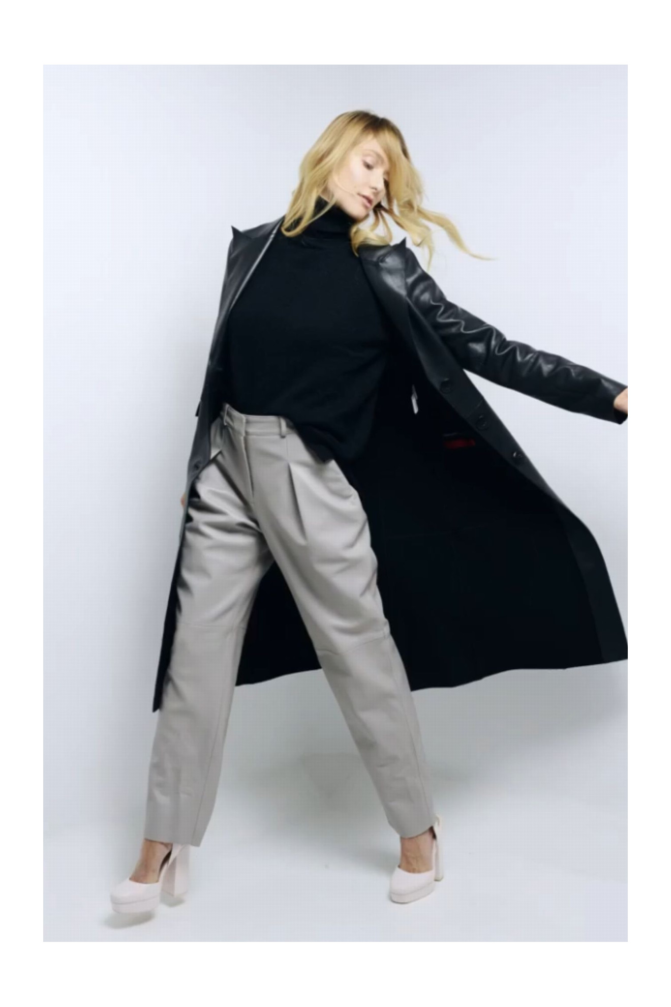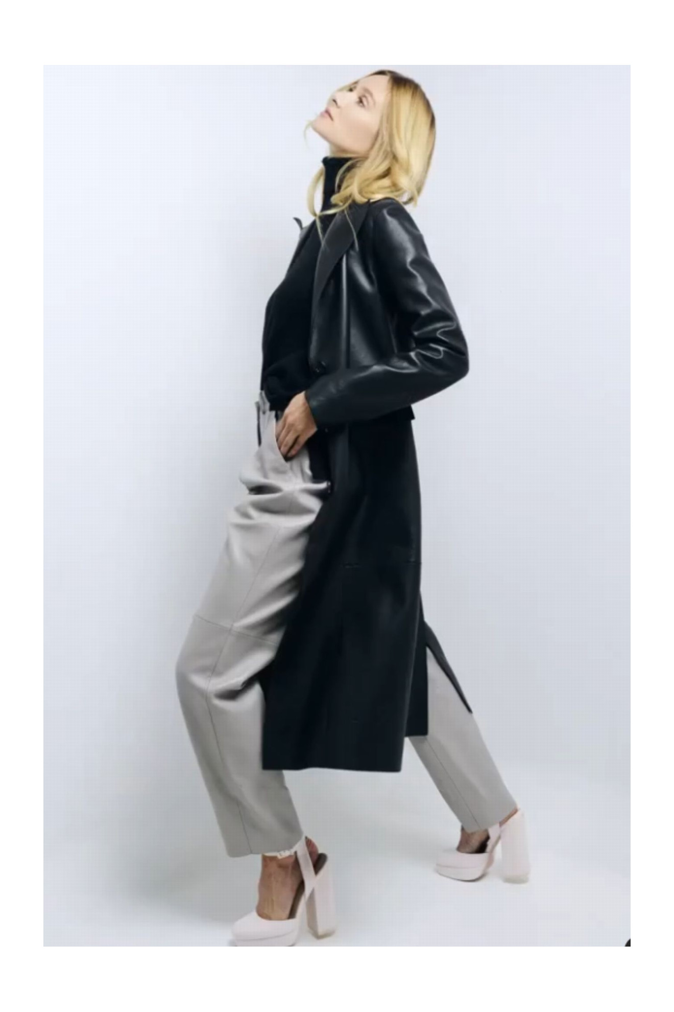 Le modèle DARILINE est un manteau long thermocollé en cuir d'agneau.
