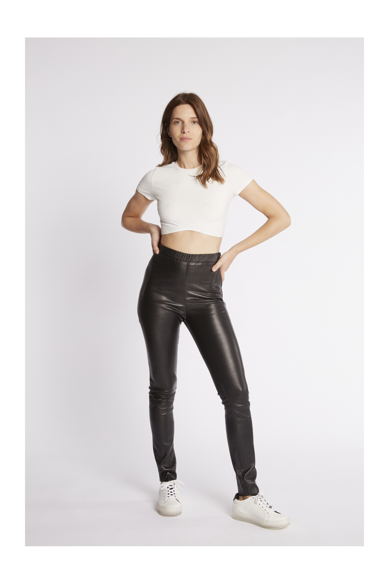 Le modèle LEGGINS TH est un legging taille haute en cuir d'agneau stretch.