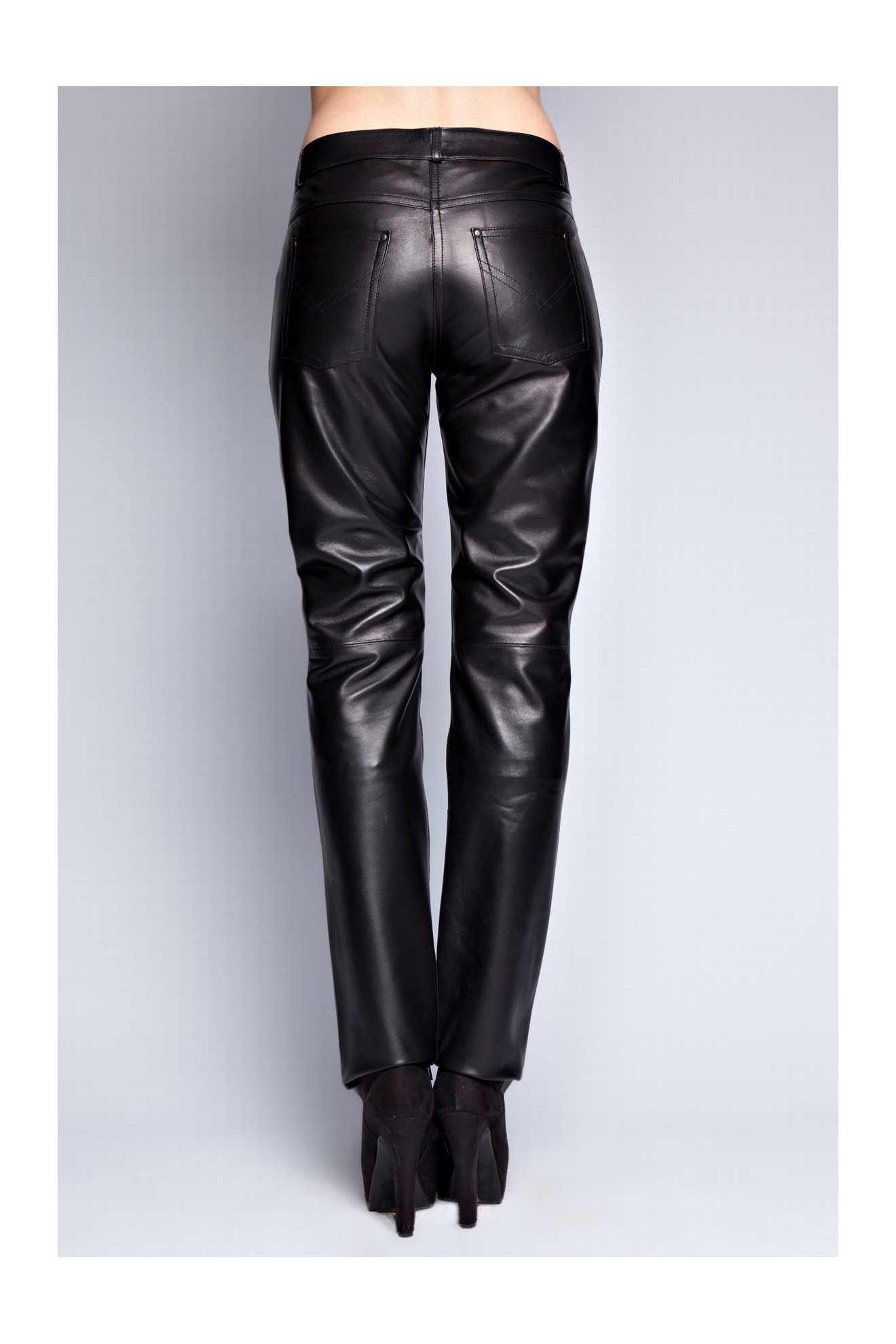 Le modèle 501F SLIM est un pantalon en cuir d'agneau.