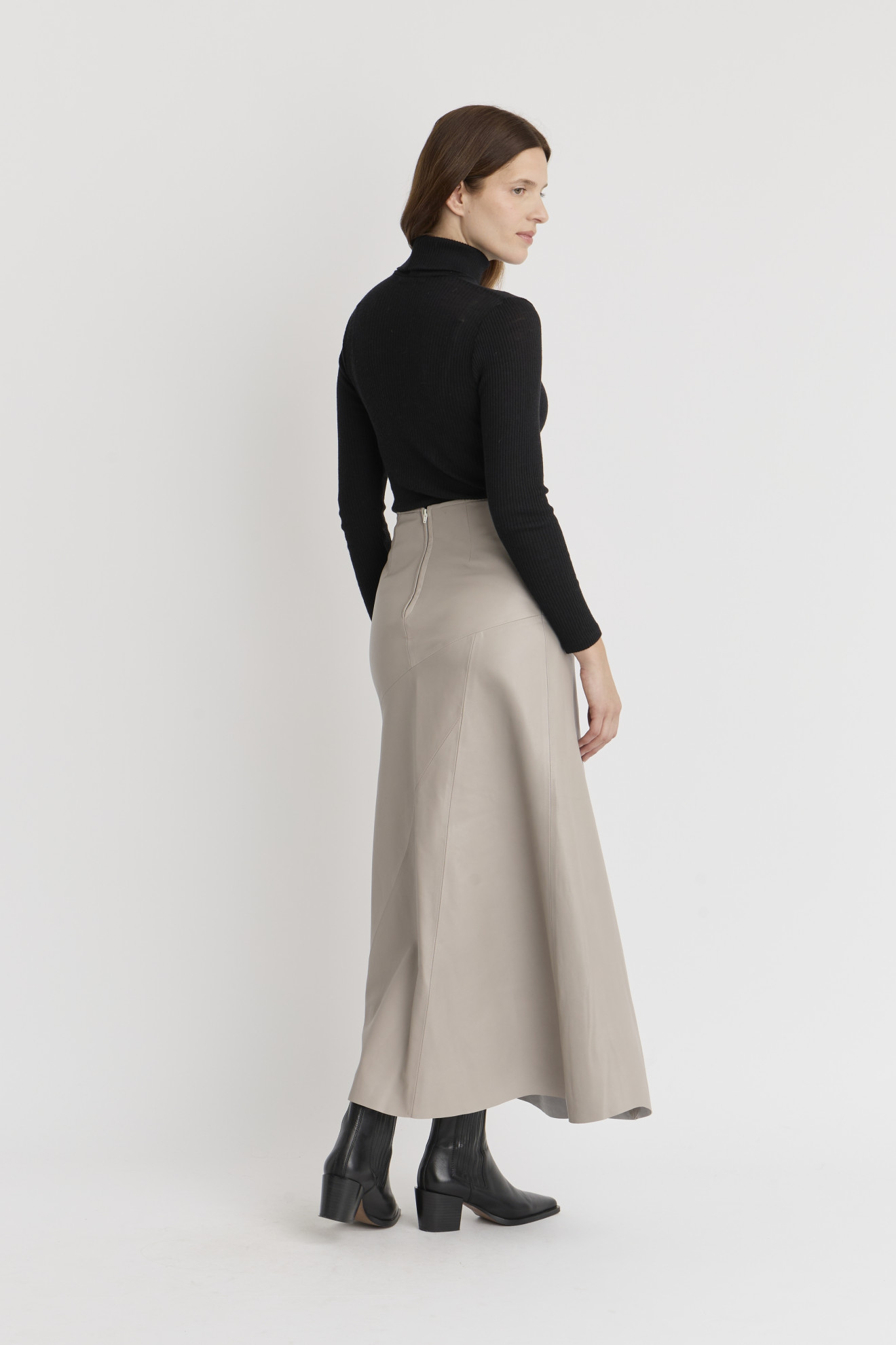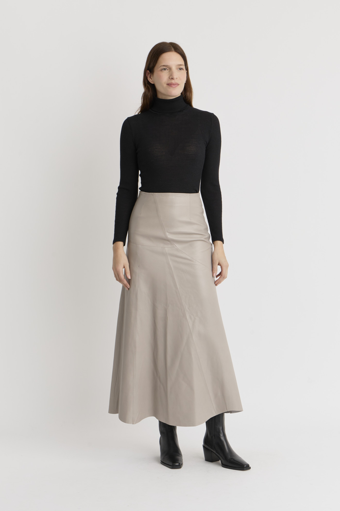Ajoutez la jupe ADA à votre collection. La jupe ADA LONGUE est une jupe en cuir d'agneau évasée