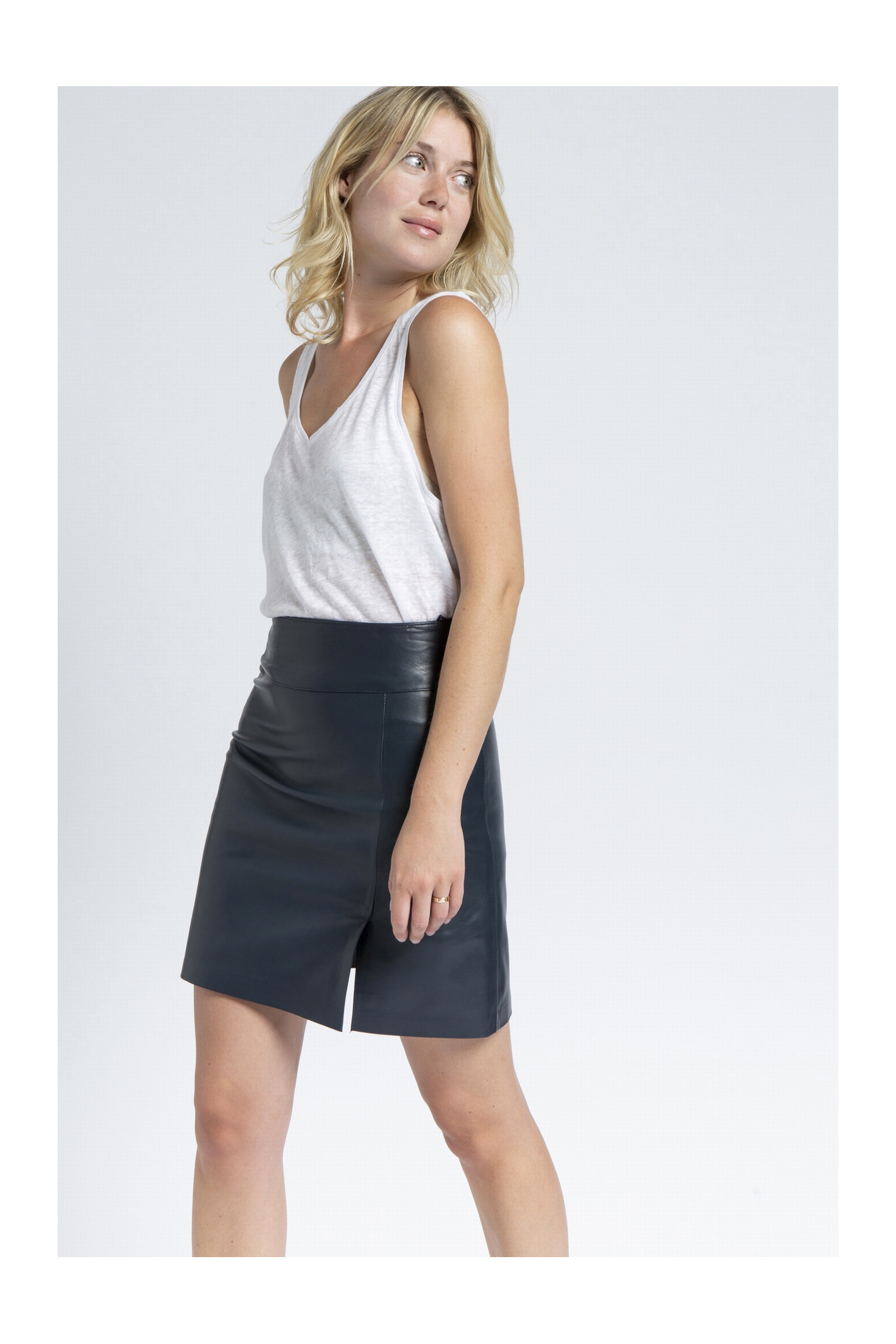 Le modèle JADE WAXY est une jupe en cuir d'agneau.