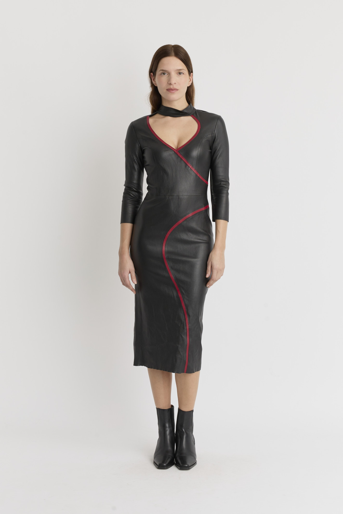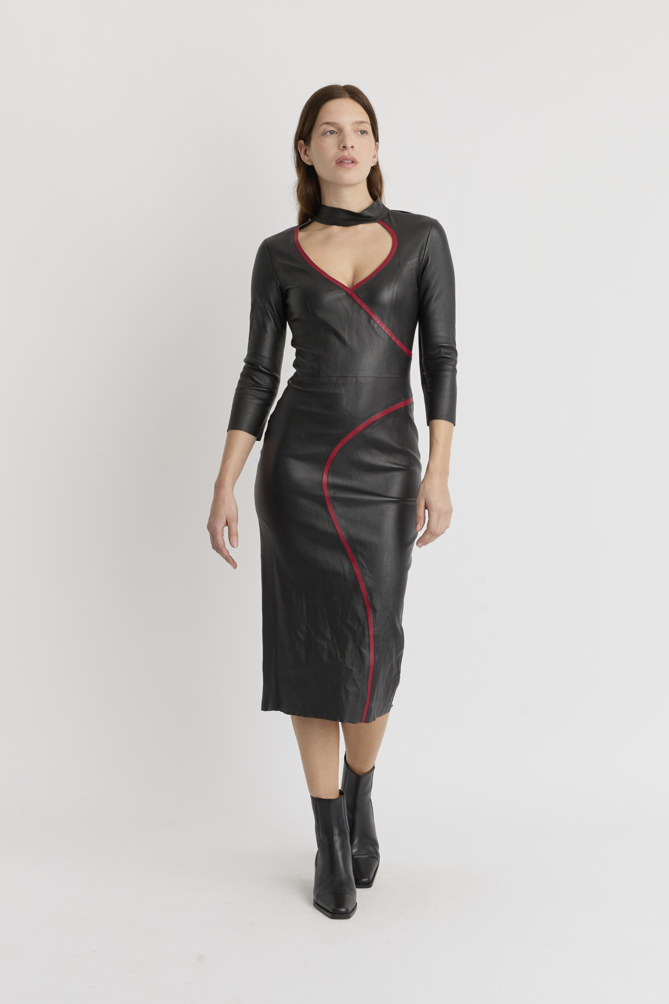 Le modèle SEDUM est une robe stretch en cuir.