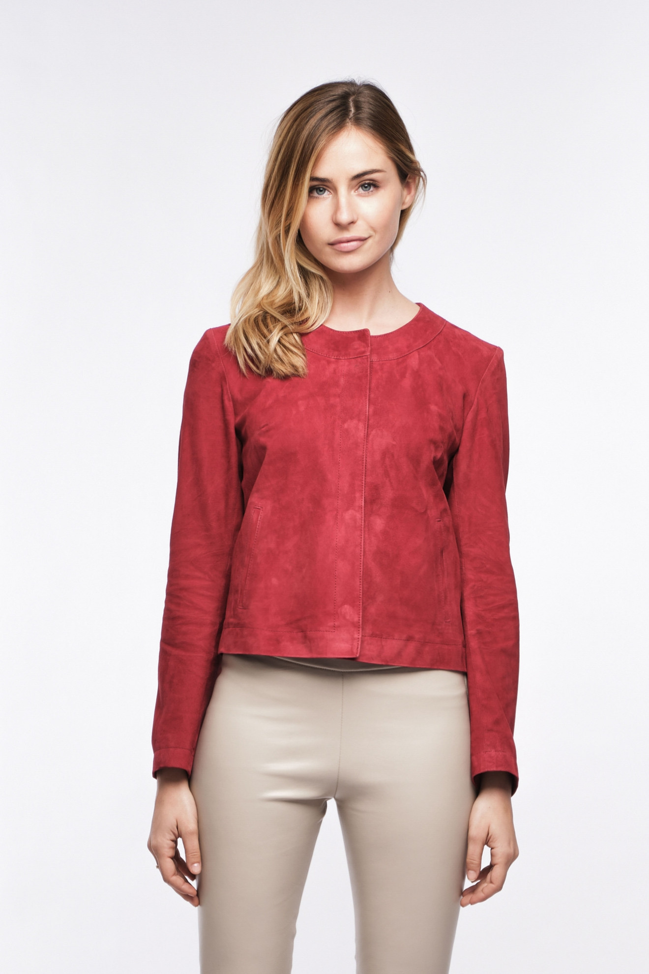 Le modèle YVOIRE VEL est une veste courte en chèvre velours.