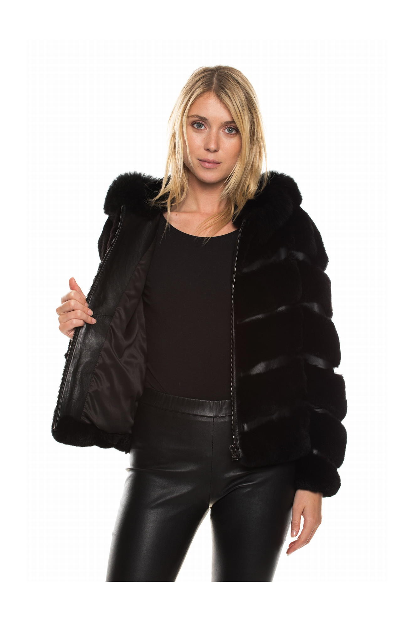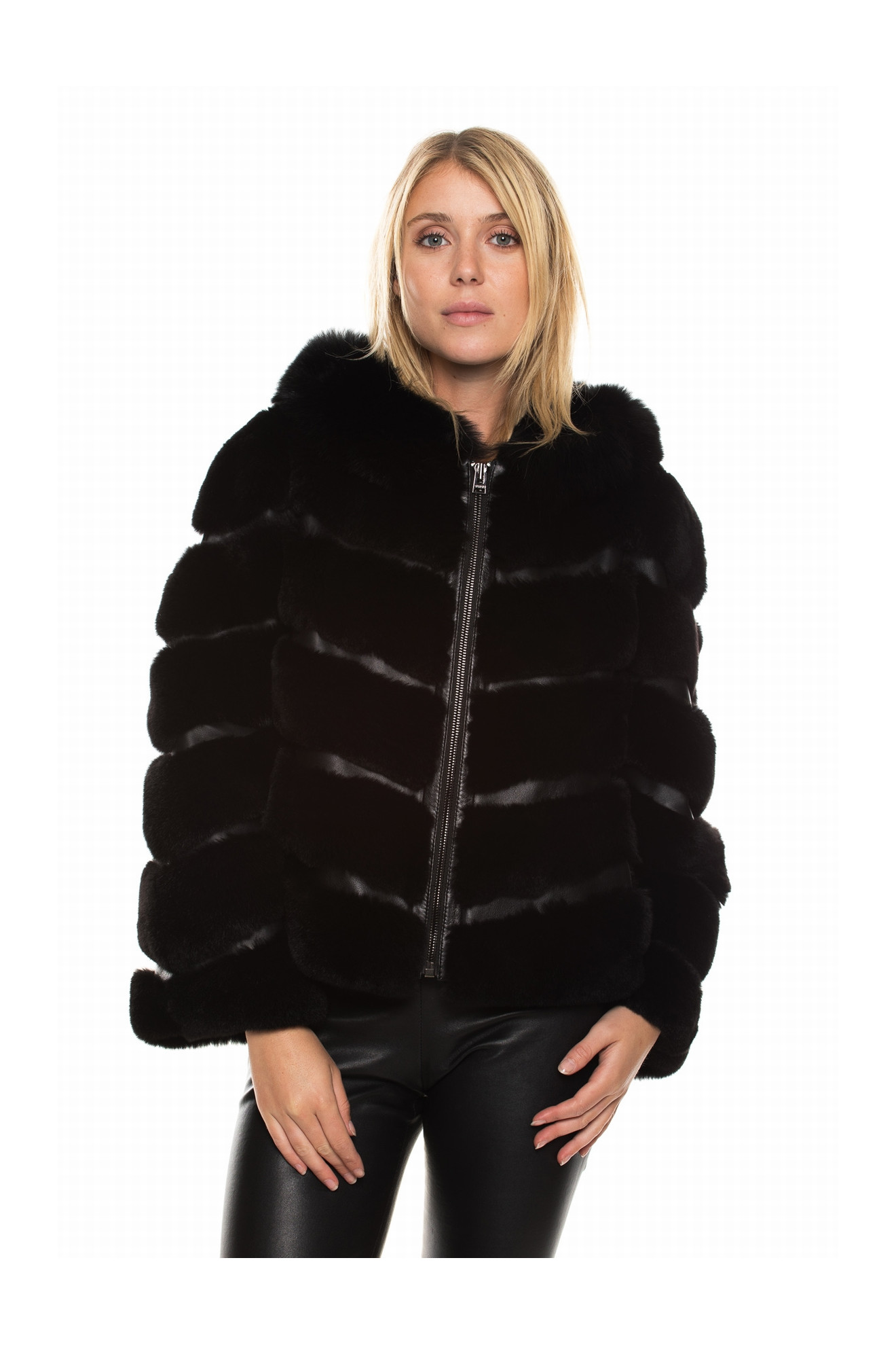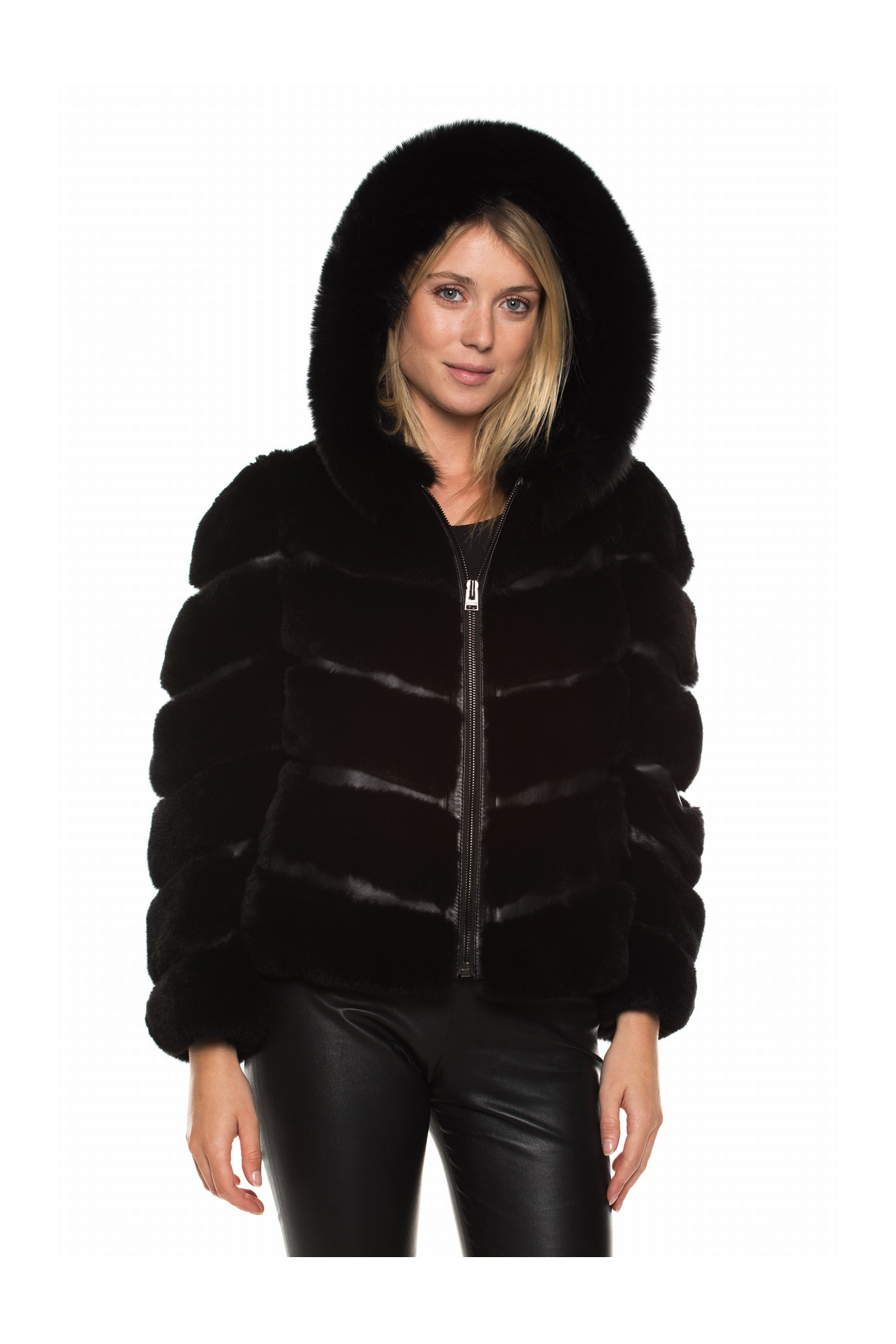 Le modèle SHANTTI REX est une veste en fourrure de lapin et renard à la capuche.