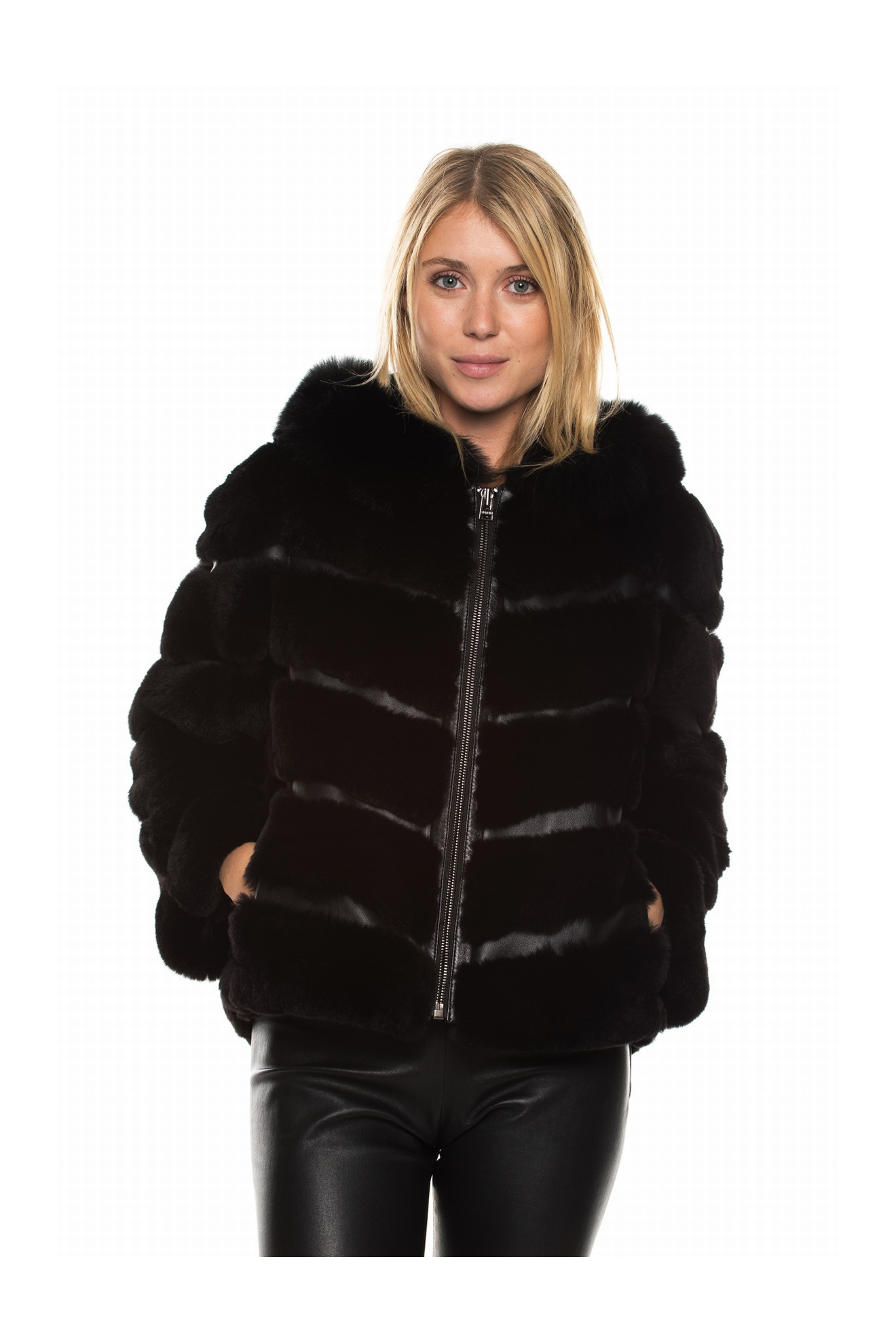 La veste SHANTTI REX de chez Giorgio & Mario est une veste en fourrure de lapin et renard avec capuche, idéale pour allier élégance, chaleur et confort.