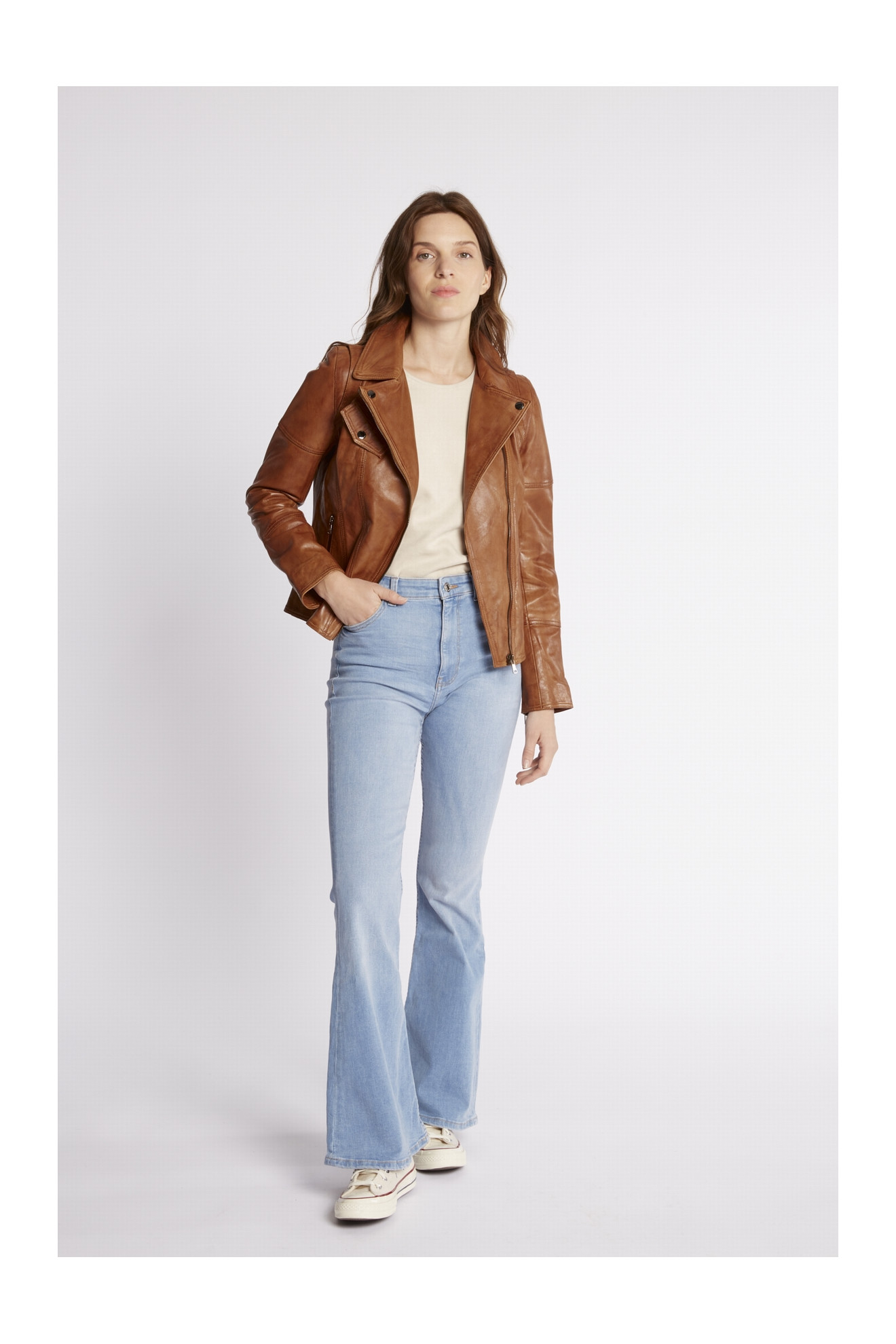 Le modèle LOVELY WAXED est un blouson perfecto en cuir lavé et patiné.