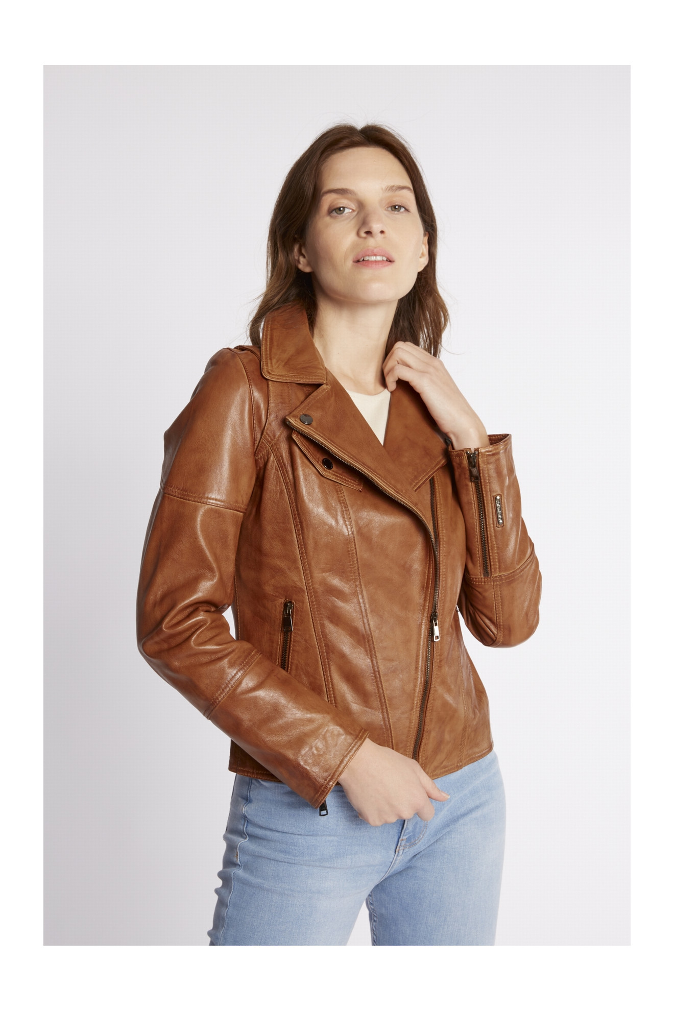 Le modèle LOVELY WAXED est un blouson perfecto en cuir lavé et patiné.