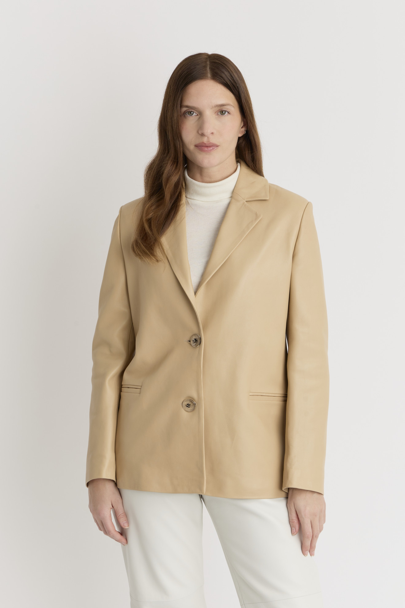 Le modèle HORIZON WAXY est un blazer en cuir d'agneau à manches longues.