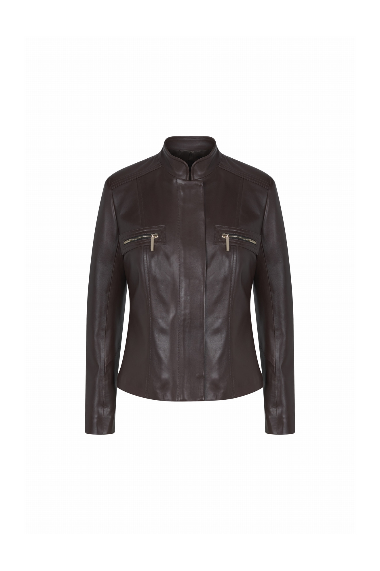 Le modèle MARRIOT WAXY est une veste droite cintrée en cuir.